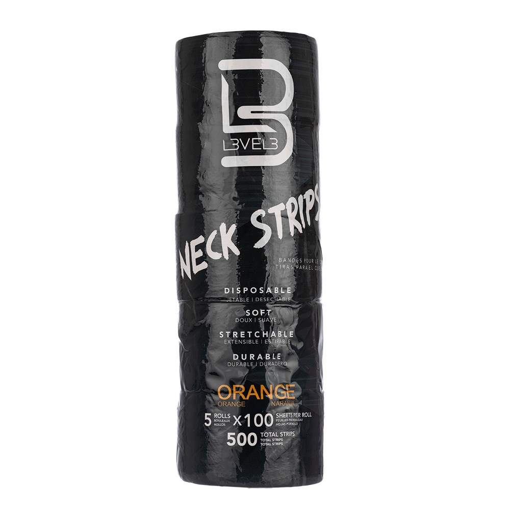 An extra layer of protection for clients. L3VEL3 Neck Strips Orange are disposable neck strips which are pre-cut and self-adhesive. The paper is stretchy for comfort, suiting all neck sizes. Prevent skin coming in contact with hair, liquids and dyes. Amazing value for premium, water resistant neck strips. Includes 5 rolls with 100 sheets per roll.