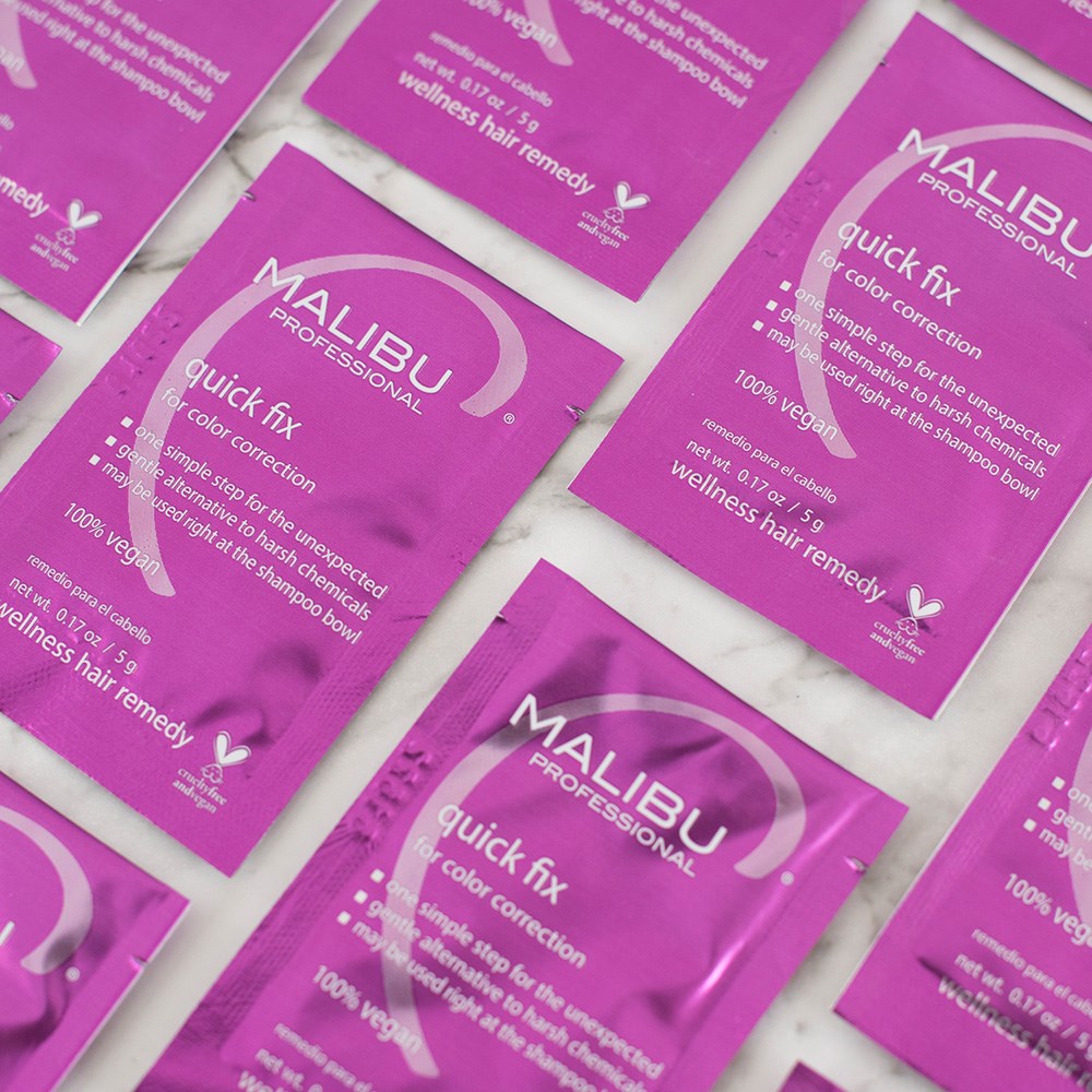 Malibu C Quick Fix Hair Treatment is the first simple step when the unexpected happens! Remove undesired colour safely, and draw out build up which inhibits successful colour results. Malibu C Quick Fix Hair Treatment protects colour. 100% vegan treatment.