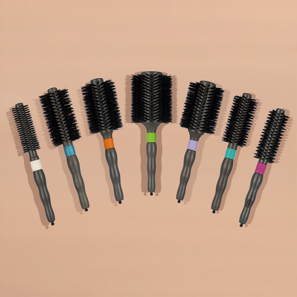 Achieve salon-quality results at home with the Mira 291 Boar Bristle Radial Brush X-Large. Designed for precision styling and superior control, this premium brush is ideal for creating volume, smooth curls, or polished blowouts on extra-long hair. Crafted in Italy, the Mira 284 features 100% natural boar bristles that gently grip the hair, distributing natural oils from root to tip for enhanced shine and reduced frizz. The extra large barrel is perfect for straightening, smoothing, or adding soft curls and waves with a professional-quality blow-dry. The ergonomic wooden handle ensures comfort and control during styling, making this brush a favourite among professional stylists and discerning individuals alike.