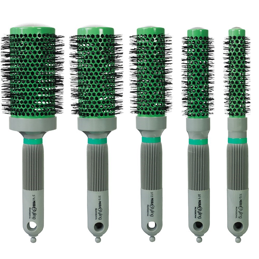 This new generation ceramic coated hot tube brush from Mira diffuses heat from a hair dryer rapidly and evenly, shortening drying time. Ceramic distributes heat consistently, without damaged hot spots. The soft cushion grip and light weight of Mira Ceramic Hot Thermal Hot Tube Brushes make them comfortable to use while offering superior control. Ideal for smoothing, volume and movement. Medium.