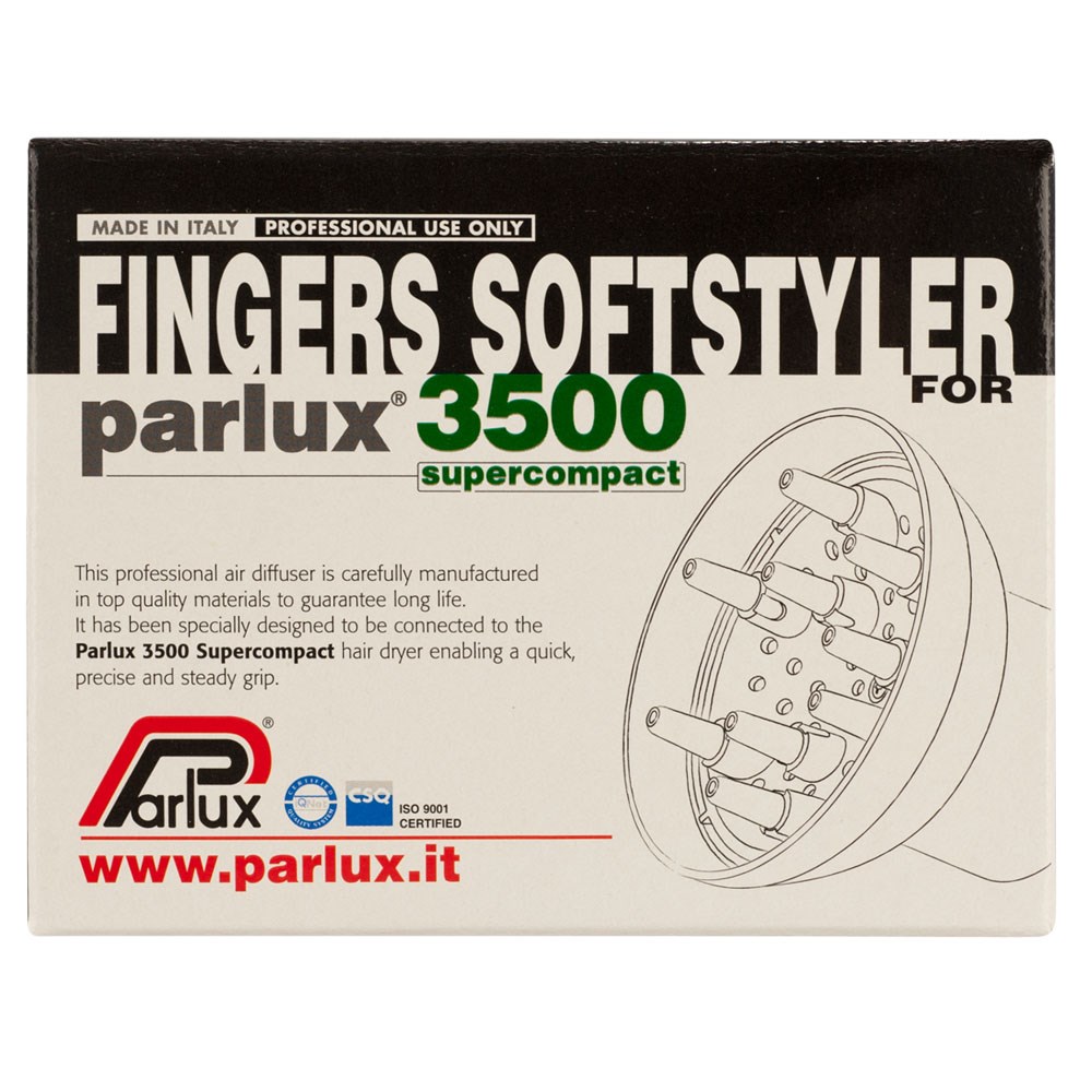 The Parlux diffuser snap locks onto either model of the Parlux 3500 SuperCompact Hair Dryers. Designed to soften and diffuse airflow to encourage curl formation without the frizz. Diffuser for curly, wavy or permed hair.