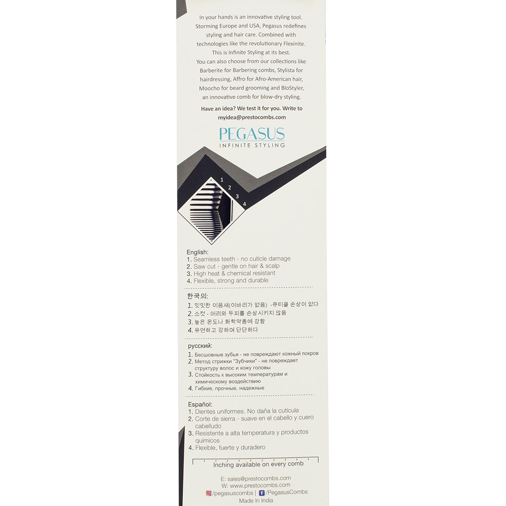 Storming Europe and the USA, Pegasus combs redefine styling. Combined with revolutionary Flexinite technology, Pegasus 103 Tail Comb Metal is styling at its best. Flexinite Smart Comb Technology creates seamless teeth which are sensitive to changing temperatures, mimicking hair and flexibly moving in response to heat and chemicals. The result? No damage to hair. Pegasus 103 Tail Comb features a metal tail to lift and separate hair, making it ideal for styling and adding volume.