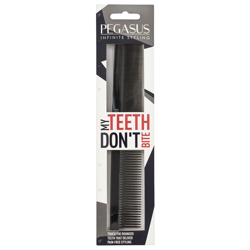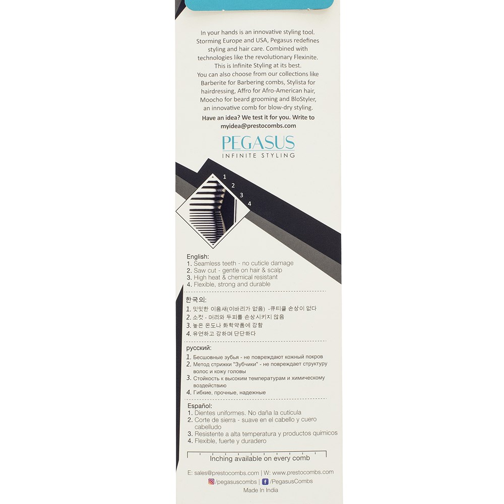 Storming Europe and the USA, Pegasus combs redefine styling. Combined with revolutionary Flexinite technology, Pegasus 211 Sectioning Cutting Comb is styling at its best. Flexinite Smart Comb Technology creates seamless teeth which are sensitive to changing temperatures, mimicking hair and flexibly moving in response to heat and chemicals. The result? No damage to hair. Pegasus 211 Sectioning Cutting Comb is ideal for cutting, barbering purposes, scissor over comb and edges. Two widths of teeth for different hair thickness.