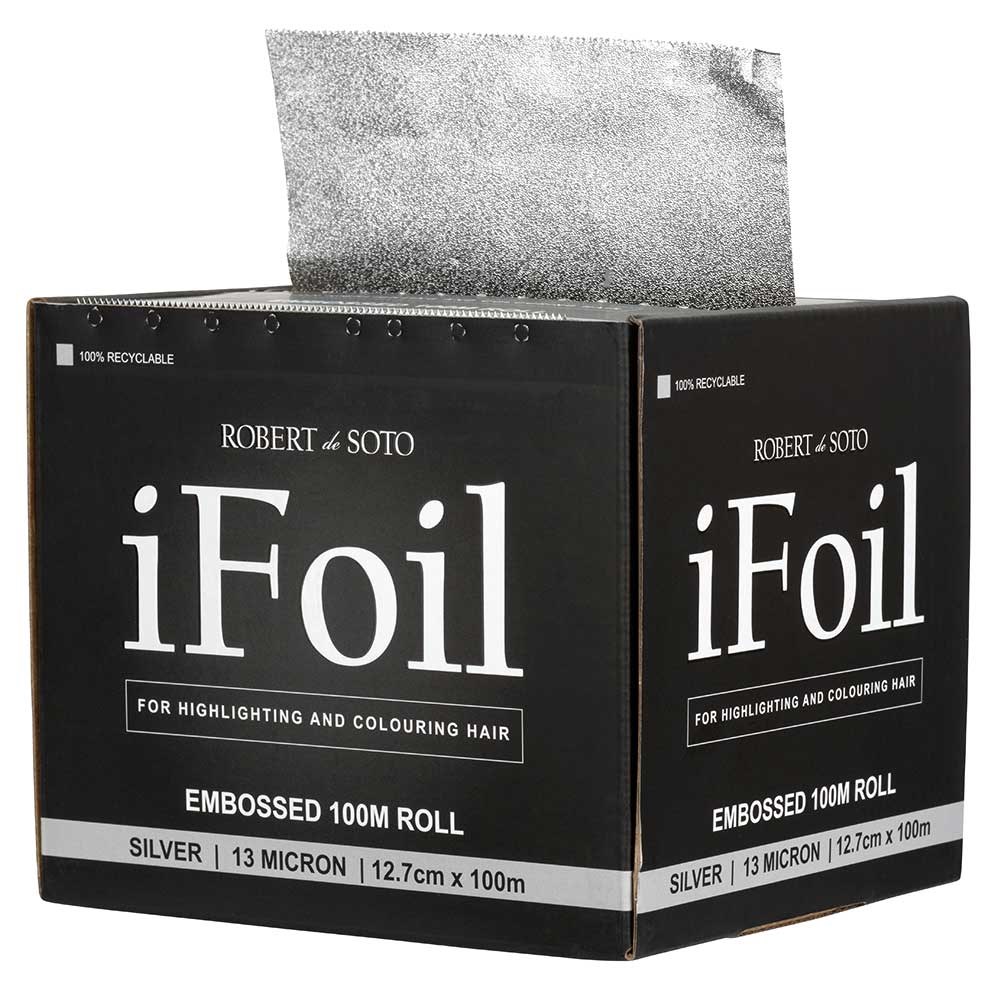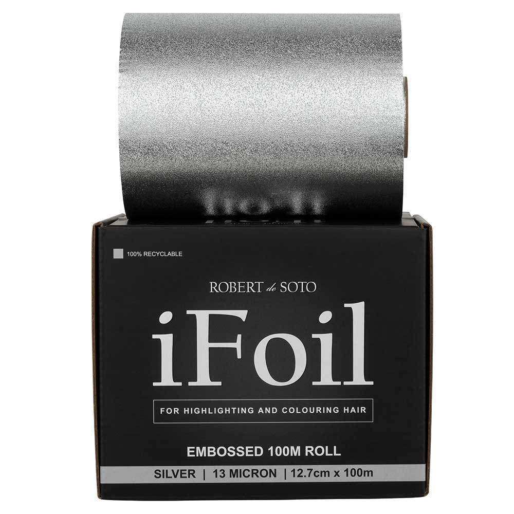 Used by salons worldwide. Great for all colouring services, this Robert de Soto iFoil Embossed 100m Roll in Silver lets you conveniently cut foil to suit your styling needs. With 100% recyclable foil, each box contains a generous 100m roll and features a convenient dispenser with inbuilt cutting blade. The embossed foil’s much needed grip prevents slippage. For the flexibility of choosing your own foil length, this is the Robert de Soto foil for you.