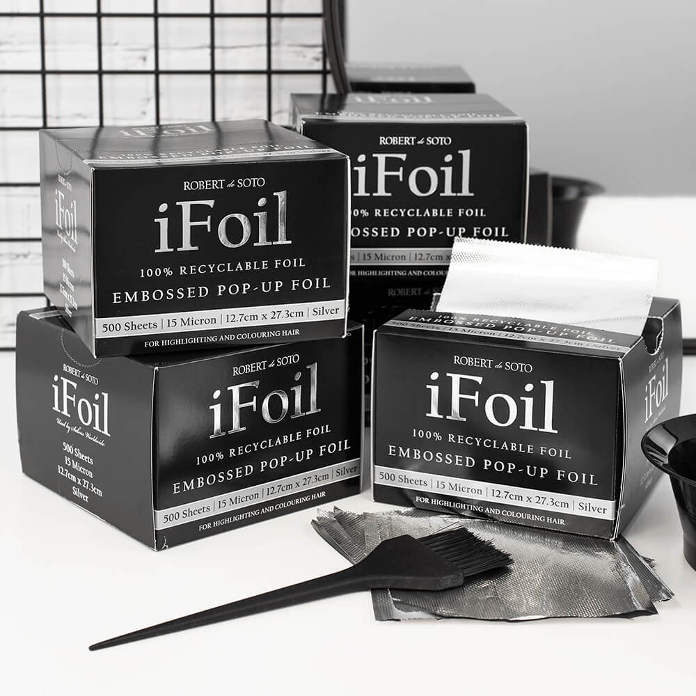 Super quick and easy to use, Robert de Soto iFoil Embossed Pop Up Pink is your ultimate time-saving product. The convenient dispenser means no cutting, no sticking, no hassle! 100% recyclable aluminium foil is embossed to save time by preventing slipping and assisting with a quicker processing time. Maximum grip and flexibility for colouring with confidence. Designed by and for discerning stylists.