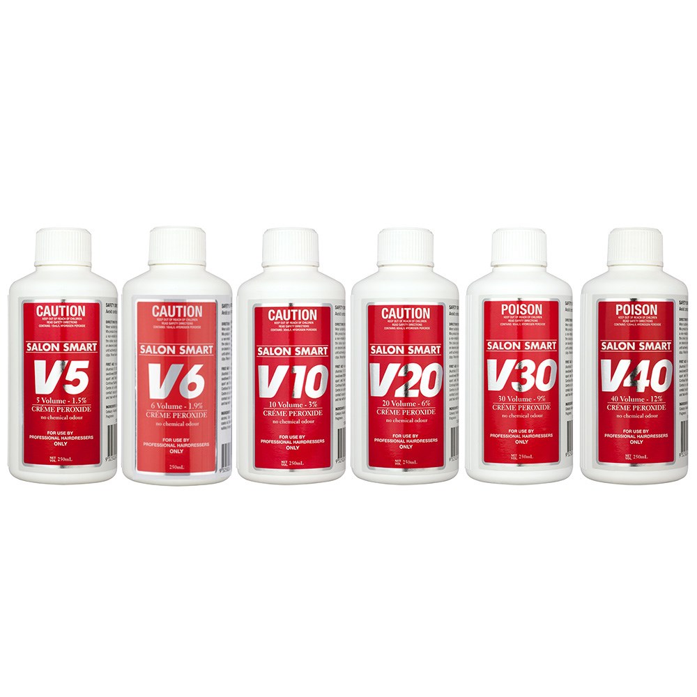 Salon Smart Crème Peroxide is formulated with a tropical fragrance, so there are no unpleasant smells or irritation to eyes. This high performance peroxide is stabilised and calibrated for optimum performance and condition. The crème base ensures a rich consistency when mixed with colour and bleach, allowing for even distribution and faster application. Convenient take-anywhere size.