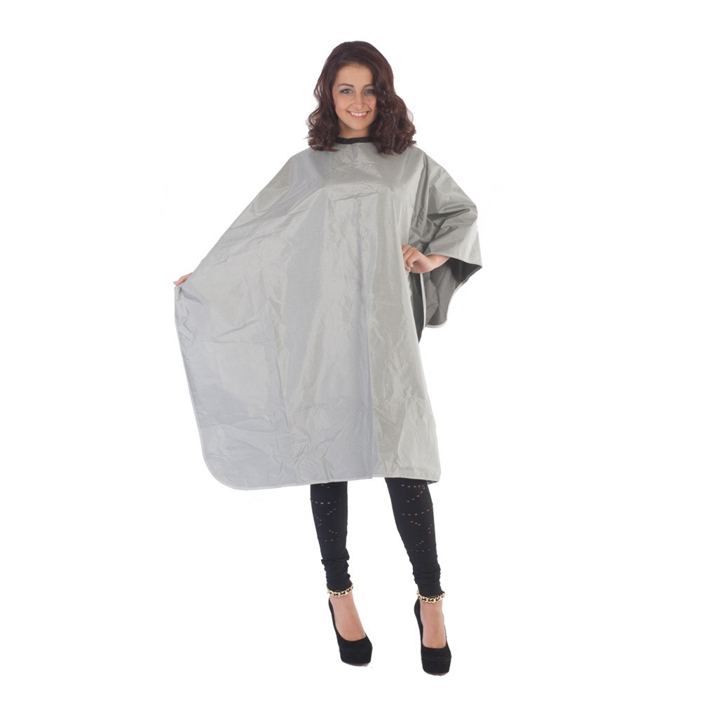 Salon Smart’s professional, all-purpose cape is made from 100% water resistant polyester for maximum protection. Adjustable Velcro closures ensure a comfortable fit. This lightweight cape is fully reversible with one black side and one silver side. Ideal cape for use during shampooing, cutting and colouring to protect clients.