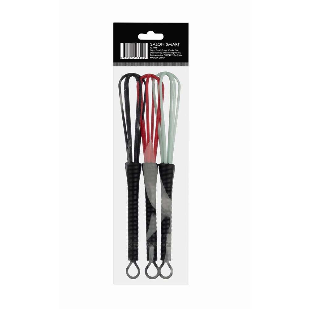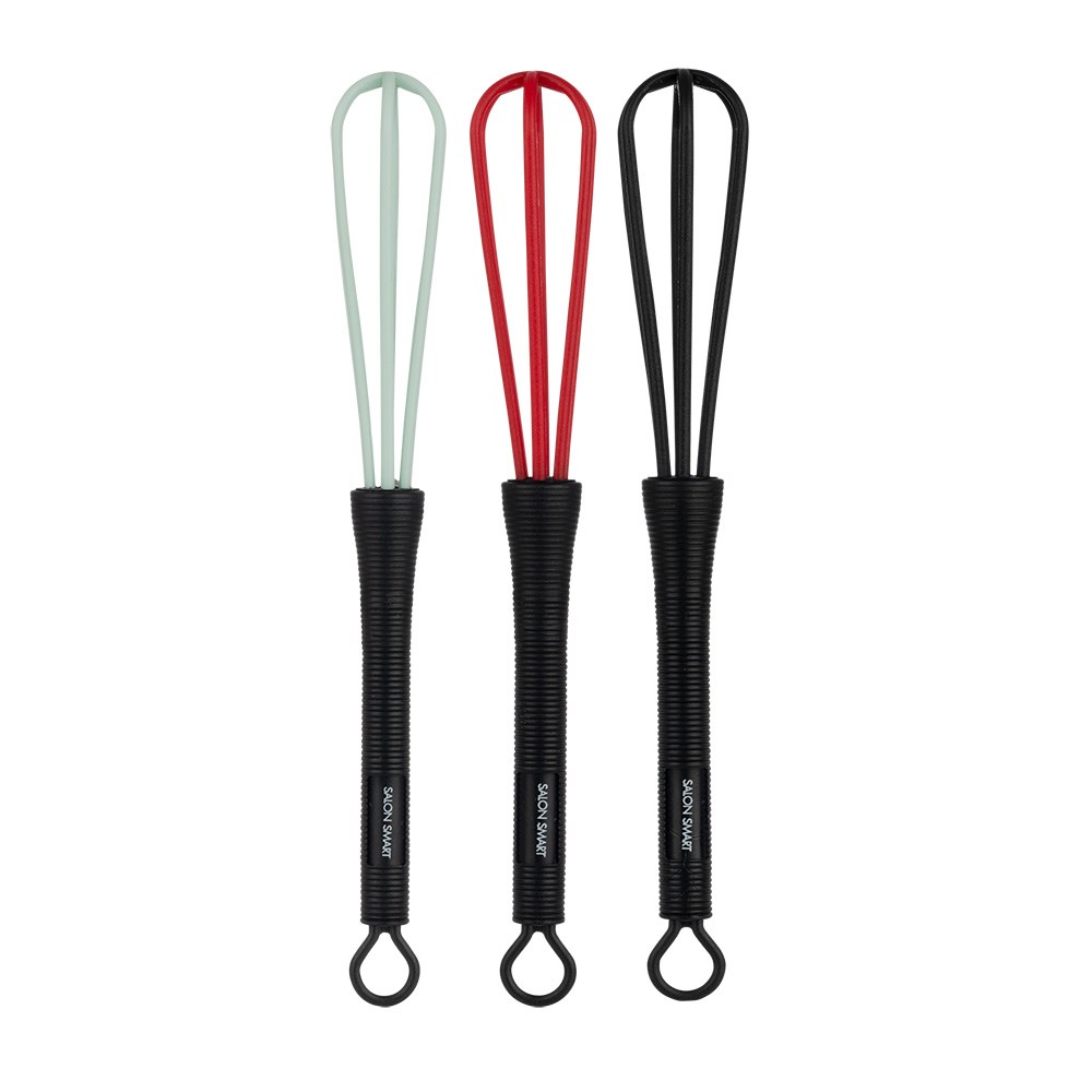 Salon Smart Hair Colour Whisks 3 Pack are a colour accessory necessity. The smart choice for savings, this set of three hair colour whisks lets you mix your colour and bleach quickly and easily. Hanging hooks make these whisks easy to store. Compact, durable design.