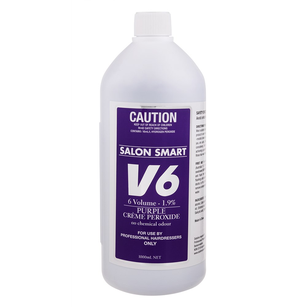 No more chemical odours with Salon Smart! This Purple Crème Hair Peroxide features a dark cherry/pomegranate fragrance. Salon Smart Purple Crème Hydrogen Peroxide is suitable for use with all hair shades of oxidised colour. Purple Crème Hair Peroxide can also assist with additional toning when used for bleaching hair, highlift colour and hair toners. High performance hair peroxide with a rich, cream base for even distribution and fast application.