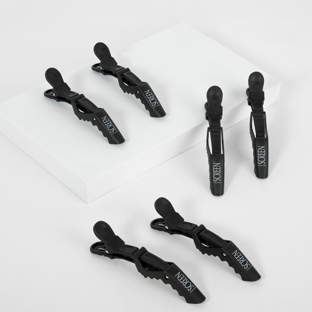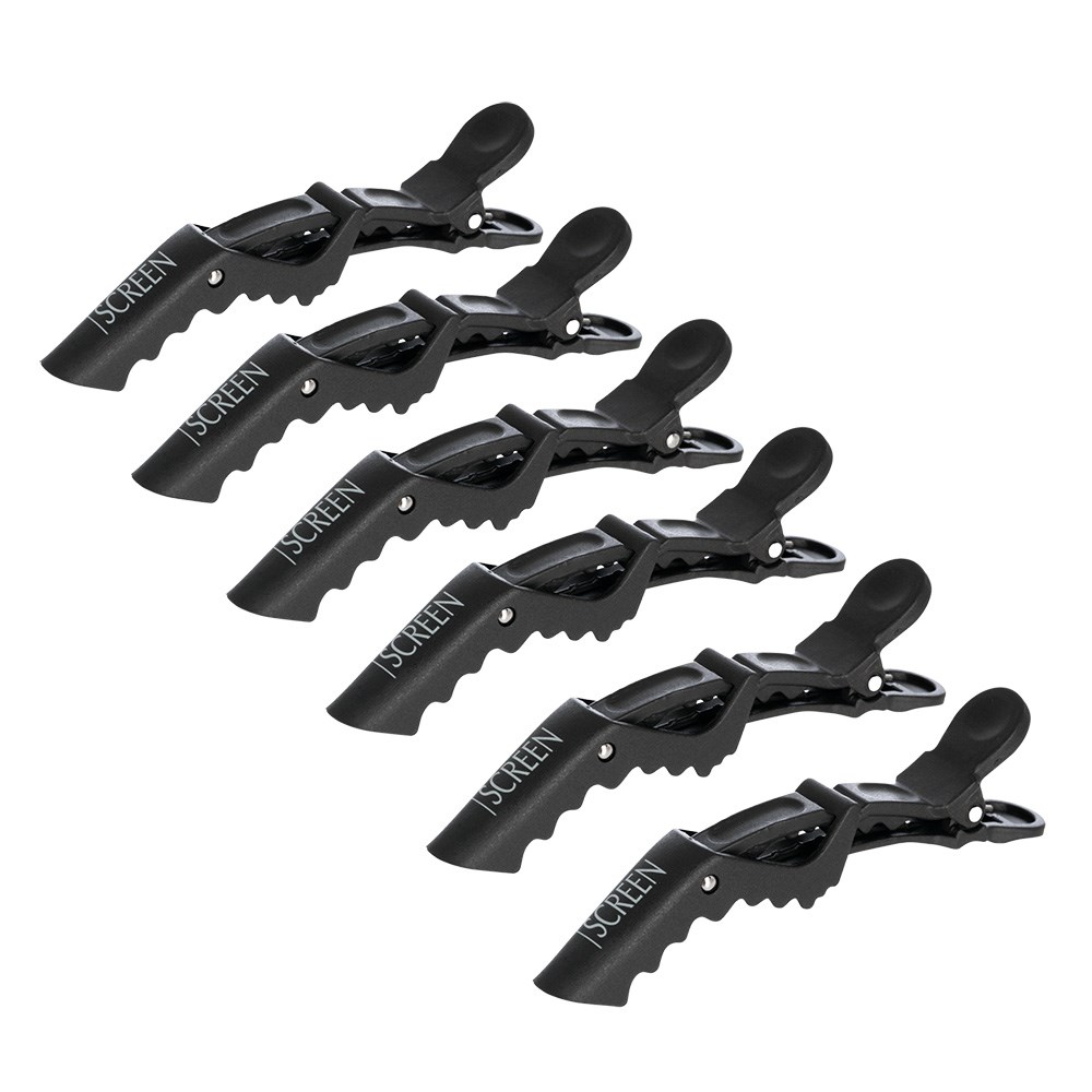Salon essentials from Screen. Screen Crocodile Clips 6 Piece in Carbon will confidently assist you, no matter where they are placed. These all-purpose, expanding clips securely hold hair for optimal styling control. Suitable for all hair types, these clips won’t snag or pull.