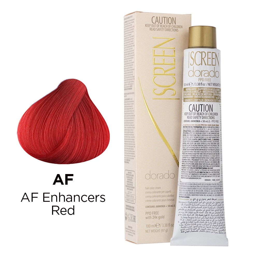 Precious cream colour with unique tonal richness. Developed in a wide range of colours, Screen Dorado Hair Colour Cream AF Enhancers Red is the culmination of advanced technology, research and continuous testing. This hair colouring cream is PPD-free and enriched with 24K gold for results which are truly incredible. Microparticles of gold reflect light, multiplying the brilliance of colour. Colour is intensely rich and exceptionally long-lasting. Maximum grey coverage and balanced, uniform results. Elite colour created in Italy.