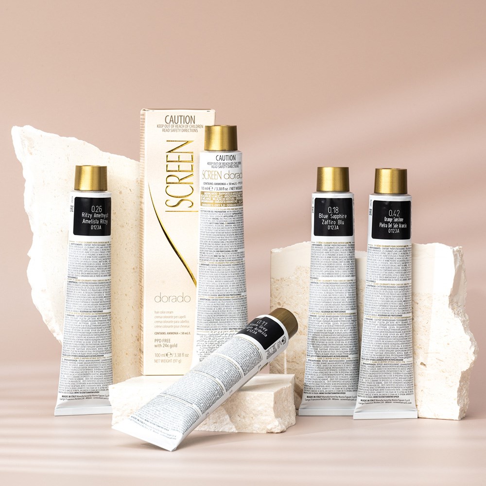 Inspired by the changing colours of the Grand Canyon over the course of the day, Screen has created the beautiful Colorado Twinkle collection. Screen Dorado Hair Colour Toner 0.26 Ritzy Amethyst is a precious hair cream with unique tonal richness. This hair colouring cream is PPD-free and enriched with 24K gold for results which are truly incredible. Microparticles of gold reflect light, multiplying the brilliance of colour. Colour is for toning and does not affect the base colour. Ethereal and sophisticated colour created in Italy.