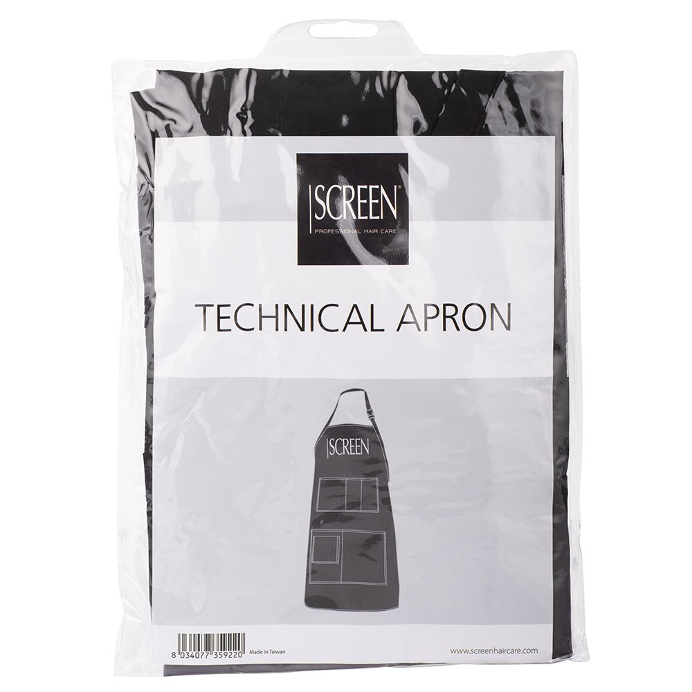 A true salon staple. Screen Professional Technical Apron is comfortable yet stylish. Featuring adjustable neck strap and easy-to-tie waist strap, this apron adapts to all. With practicality in mind, the apron has spacious pockets for storing clips, combs, brushes and more. Ideal for protecting staff’s clothing during salon services.
