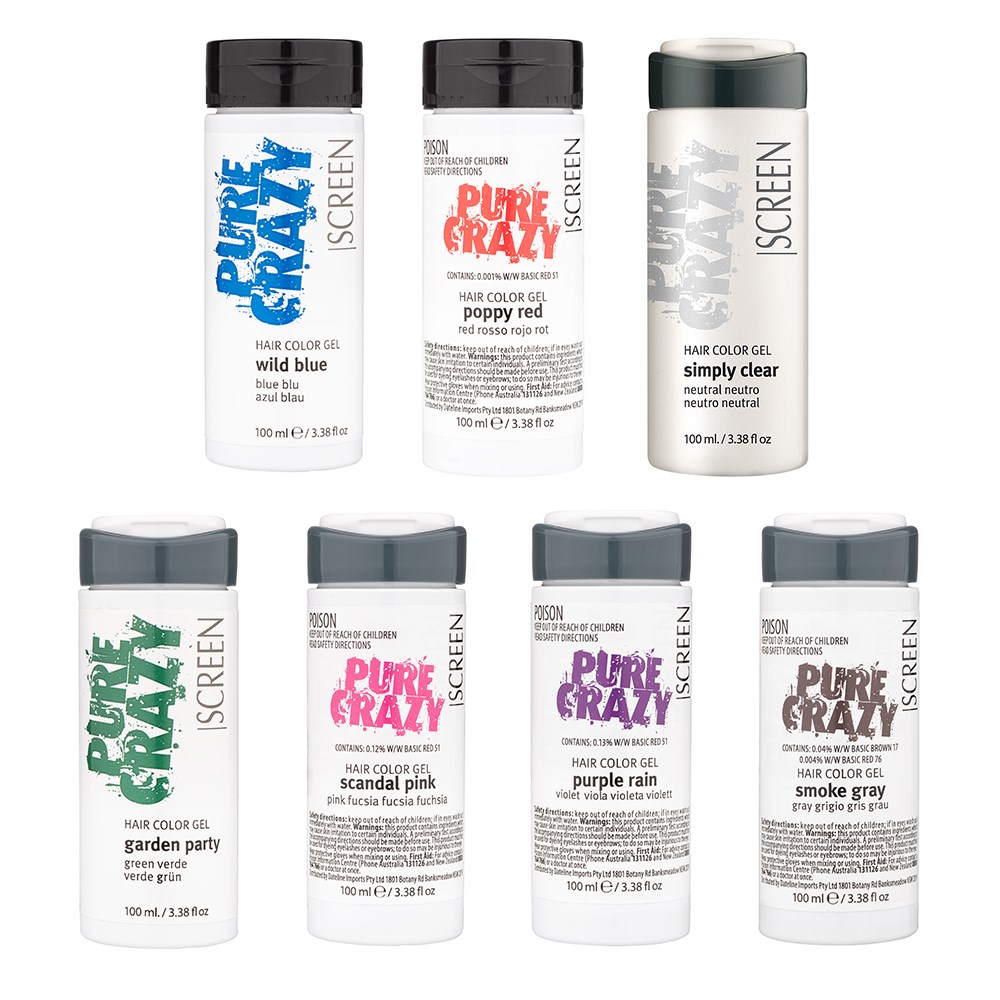 Transform hair into the most fashionable accessory. Screen Pure Crazy Colour Gel Simply Clear is a pure expression of creativity. Give life to vibrant and original colours without commitment, bleaching or stressing hair. Formulated by professionals, this colour gel conditioner adds temporary colour and conditions at the same time. Great for those who love to play – test your creativity with intermixable shades for infinite possibilities! From pastel to vivid, this is high quality, professional temporary colour made crazy fun.