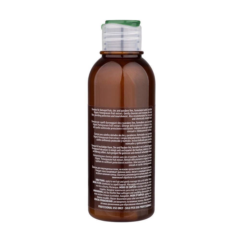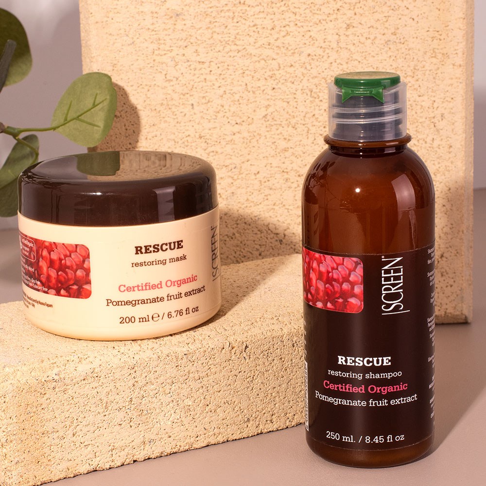 Organic ingredients for the maximum expression of purity. Screen Purest Rescue Restoring Shampoo is clean beauty made in Italy. Formulated with certified organic pomegranate extract, this restoring shampoo gently cleanses while repairing damaged, stressed hair fibres. Pomegranate is known for its restructuring and strengthening abilities. SLS-free and paraben-free, this shampoo is suitable for daily use. Naturally derived, non-genetically modified ingredients in a colourant-free formula for nourishment and repair of damaged and chemically treated hair.
