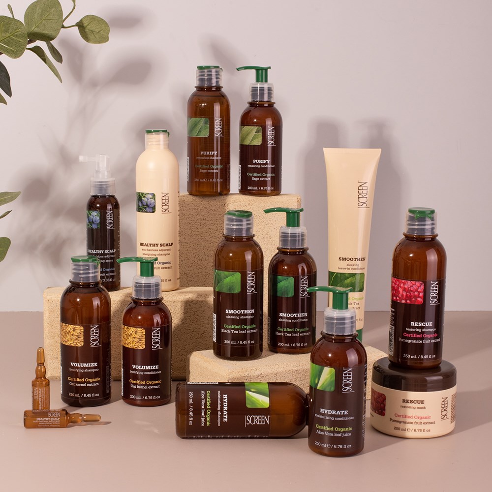 Organic ingredients for the maximum expression of purity. Screen Purest Smoothen Sleeking Conditioner 1L is clean beauty made in Italy. Formulated with certified organic black tea leaf extract, this smoothing conditioner moisturises, softens and adds manageability to unruly hair. Black tea leaf is known for its restructuring and moisturising abilities. SLS-free and paraben-free, this conditioner is suitable for daily use. Naturally derived, non-genetically modified ingredients in a colourant-free formula for smoothness and silkiness.