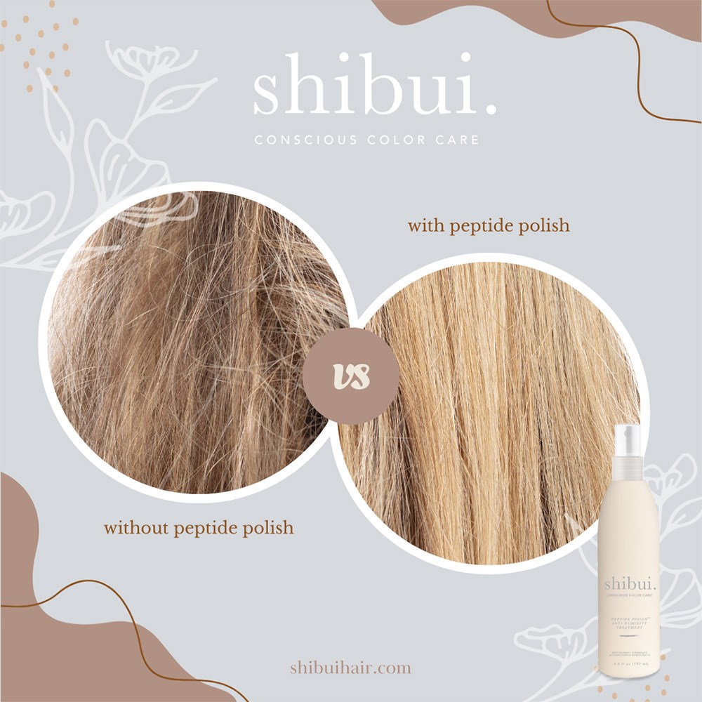 Conscious colour care. Shibui goes back to nature’s drawing board, embracing botanically-rich colour care which is simple and unobtrusive. Beyond clean beauty, this is a new level of conscious colour care redefining beautiful. Shibui Peptide Polish Anti-Humidity Treatment delivers sublime levels of shine and shields against humidity. This featherweight, heat-activated mist enhances and helps protect colour and softness for up to three washes. Simply scented, free from synthetic fragrance. Vegan and free from sulphates, gluten, parabens, phthalates and cruelty.