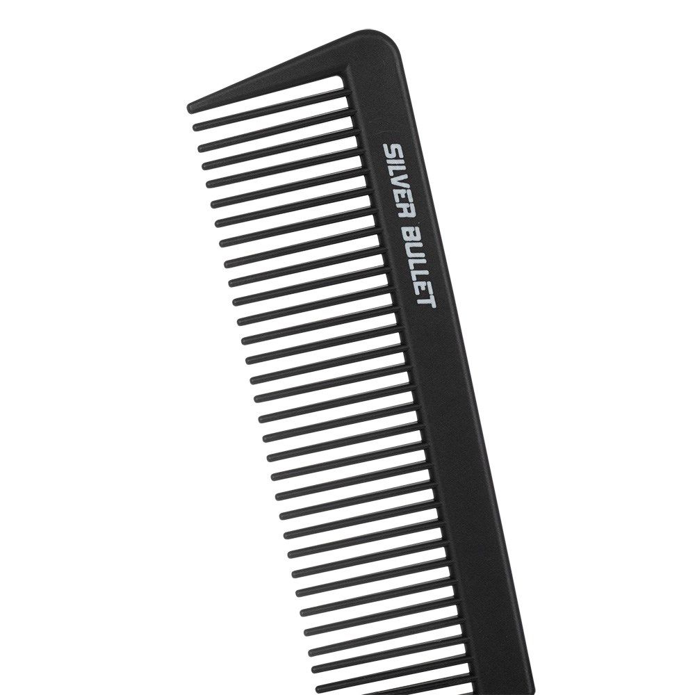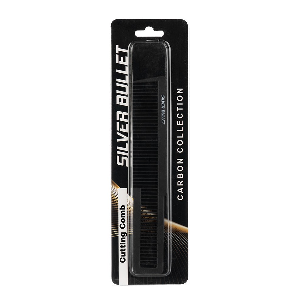 Silver Bullet Carbon. Strong. Resistant. Super-smooth. Silver Bullet Carbon Clipper Cutting Comb is made from carbon fibre and unconditionally guaranteed against breakage. Super-smooth teeth effortlessly glide through all hair types. Heat resistant and perfect for blow-drying. Ideal for use with chemicals. This 22.5cm comb features a wide design to allow your clipper to run directly over the top.