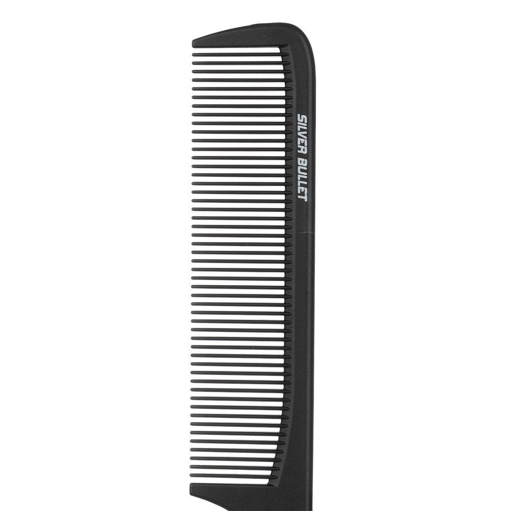 Silver Bullet Carbon. Strong. Resistant. Super-smooth. Silver Bullet Carbon Tail Comb is made from carbon fibre and unconditionally guaranteed against breakage. Super-smooth teeth effortlessly glide through all hair types. Heat resistant and perfect for blow-drying. Ideal for use with chemicals. This 23.8cm comb is excellent for parting and sectioning during blow-drying, curling and straightening. Plastic pin tail provides gentler sectioning without scratching the scalp.