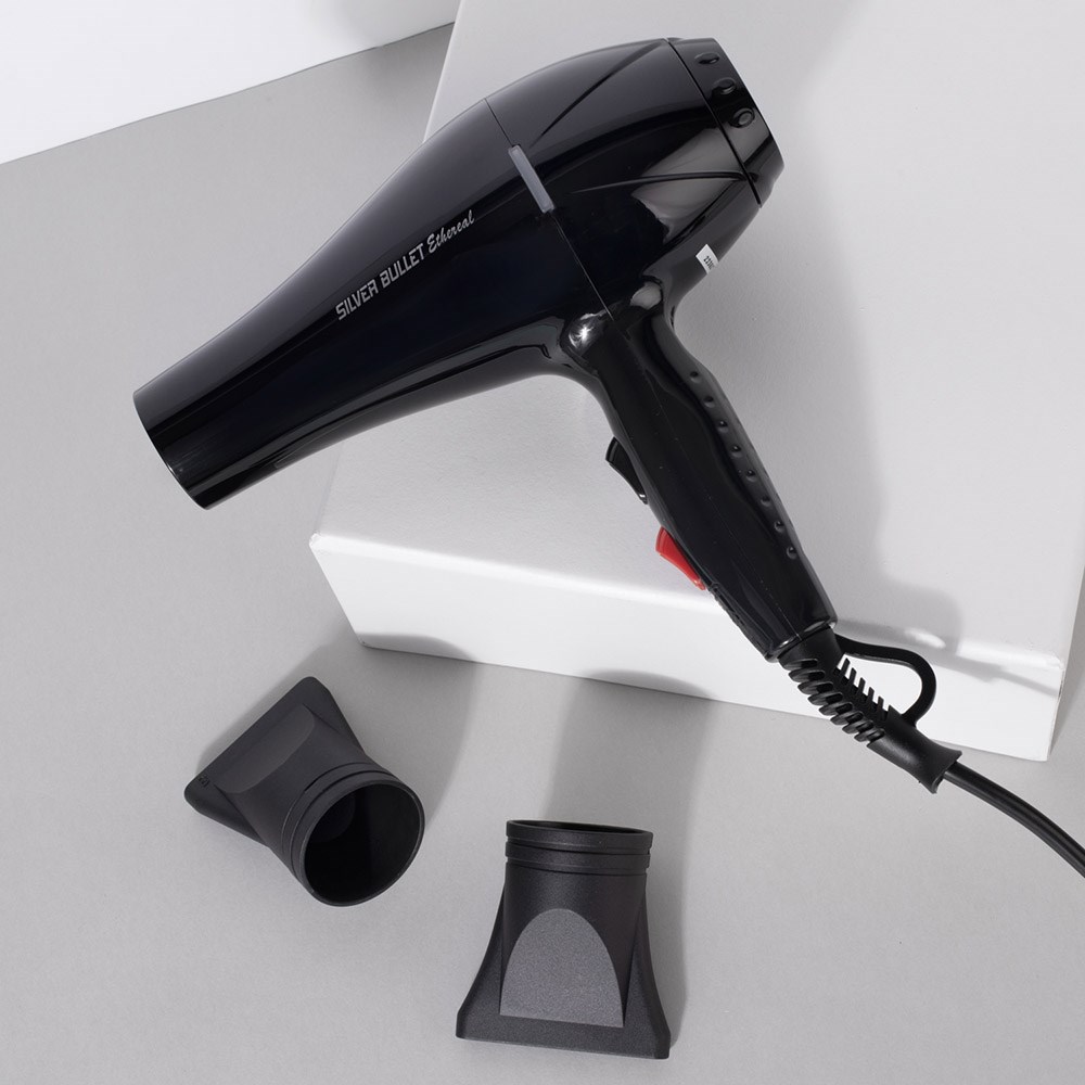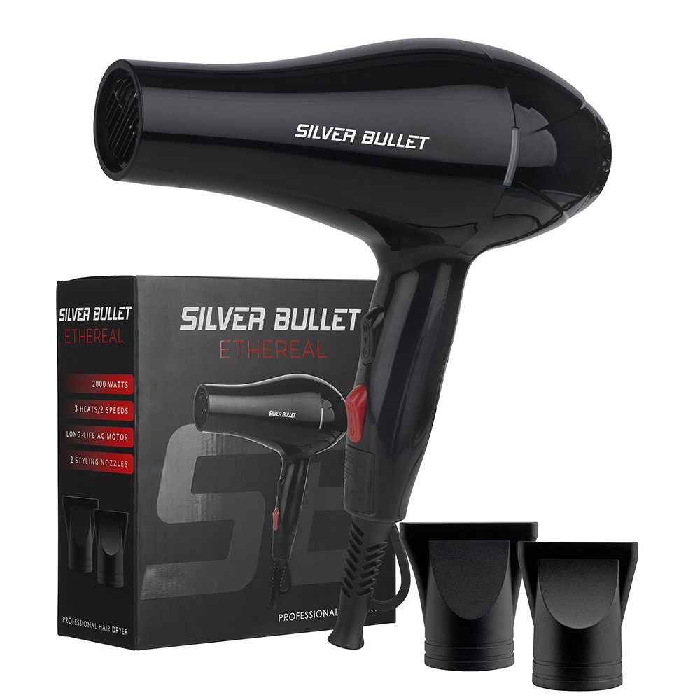 Hair which is out of this world! Hotter, faster, better and, most importantly, affordable, the Silver Bullet Ethereal is a heavenly experience for hair. The Silver Bullet Ethereal Hair Dryer features 2000 watts of power and a long-life AC motor. 3 heat, 2 speed settings for all hair types. Delivers exquisitely smooth hair day after day.
