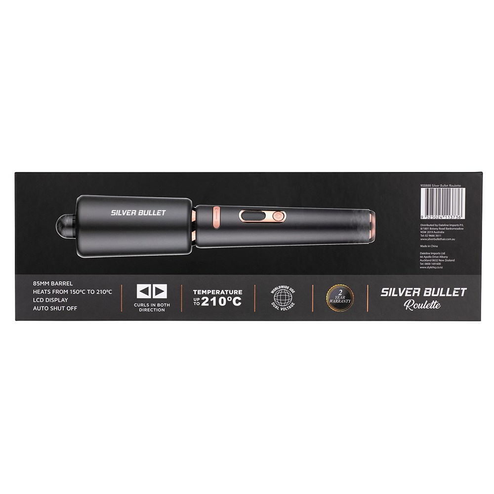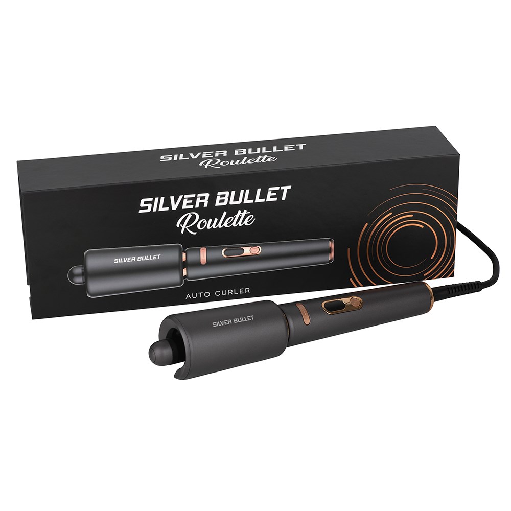 The new and improved automatic curler! Long-lasting, bouncy curls with barely any effort. Silver Bullet Roulette Auto Curler is easier, faster, better. Just push the button and the internal ceramic barrel gently twirls a section of hair. Hold for 8 seconds and enjoy incredibly consistent, even curls in either direction with no skill required. What’s new? Ultra-sleek Curling Irons design, LCD display and safe auto shut off function. Heat settings from 150°C-210°C are suitable for every hair type. Automatic curling gets even better!
