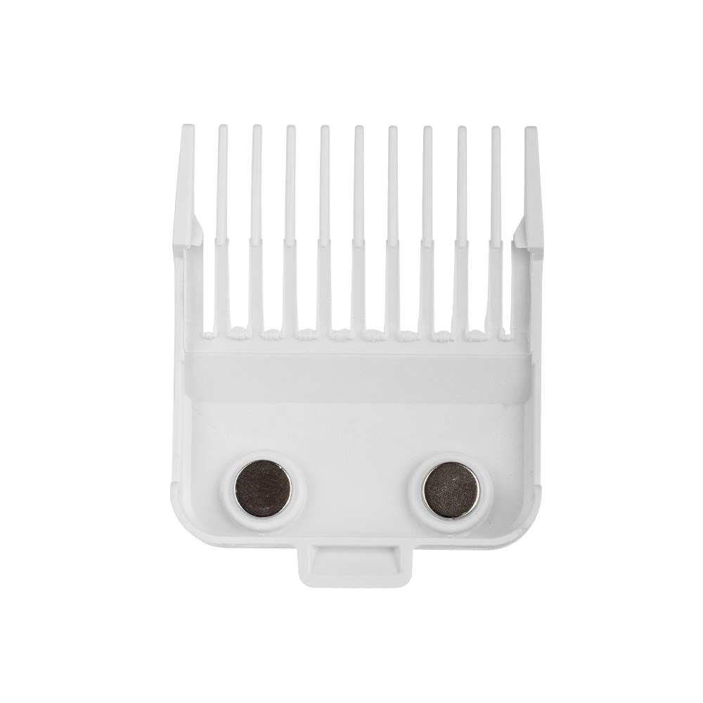 Comb attachment for the StyleCraft by Silver Bullet Instinct X Hair Clipper. This magnetic guard uses strong magnets to securely attach to the clipper blade. Made from durable yet lightweight plastic, the attachment is quick and easy to change in mere seconds, saving you time. No. 1.5 – 4.5mm 3/16”. Used for blending between #1 and #2; helpful in creating smooth transition zones.