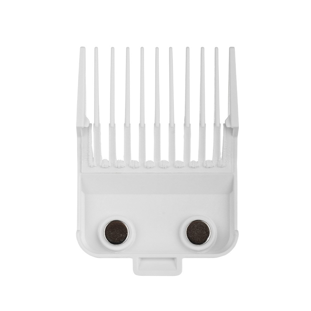 Comb attachment for the StyleCraft by Silver Bullet Instinct X Hair Clipper. This magnetic guard uses strong magnets to securely attach to the clipper blade. Made from durable yet lightweight plastic, the attachment is quick and easy to change in mere seconds, saving you time. No. 3 – 10mm 3/8”. Good for slightly longer buzz cuts or low fades, leaving a soft yet short length.