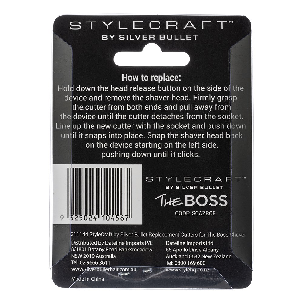 Replacement cutters for StyleCraft by Silver Bullet The Boss Shaver. Includes two, easy-to-replace cutters which deliver smoother shaving and faster cutting. Made from durable stainless steel for a superior shaving experience.