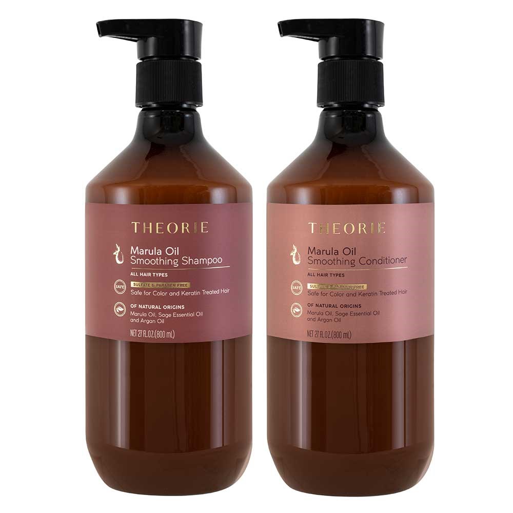 Halt damage and transform frizz with the Theorie Marula Oil Smoothing Shampoo. Gently cleanse impurities, excess oil and product build-up from the hair while enriching with the power of marula oil, argan oil and sage, a plant rich in vitamins and antioxidants. Frizz is sealed with moisture to renew dry, frizzy hair into luminous silk full of life and style.