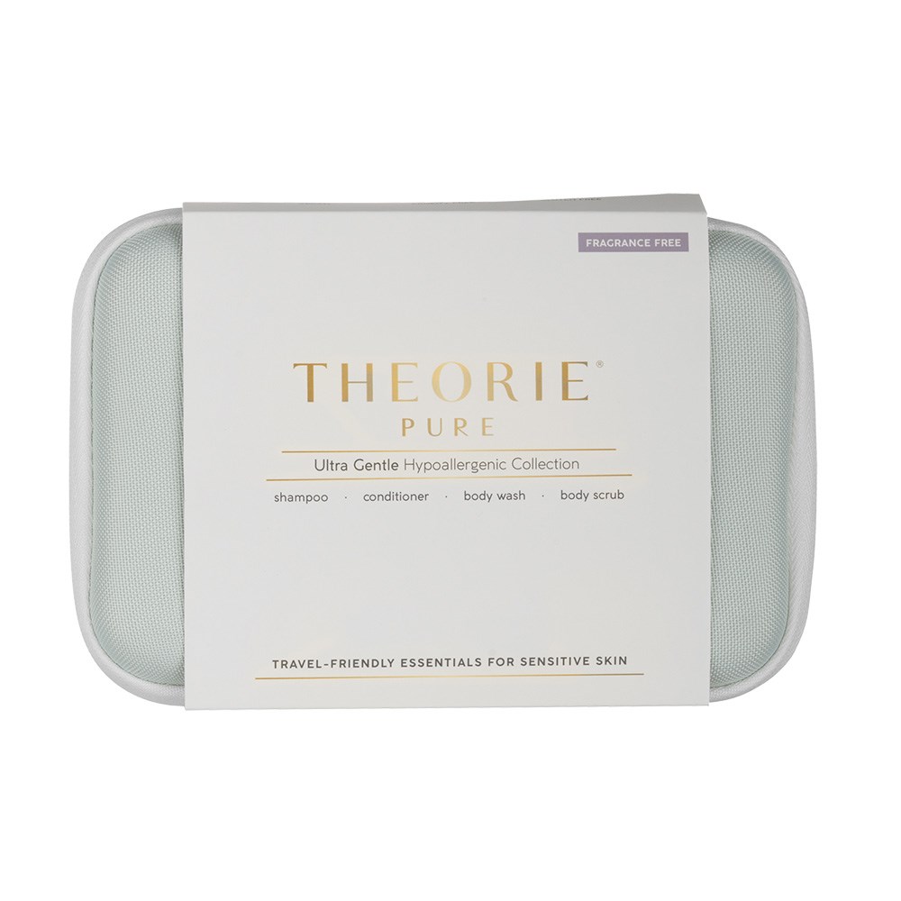 Elevating the beauty of travel. Theorie Ultra-Gentle Hypoallergenic Travel Kit is formulated to affirm the thesis that self-care can be free from compromise. Luxurious lathers which transcend the ordinary. Botanical formulations which confer benefits you can see and feel. This fragrance-free collection includes Ultra-Gentle Hypoallergenic Shampoo, Conditioner, Body Wash and Body Scrub. Ideal for sensitive types, skin and hair are gently cleansed and left radiantly glowing. Free from sulphates, parabens, gluten, alcohol, synthetic dyes, phthalates and animal-derived ingredients. Includes protective, zippered hard case.