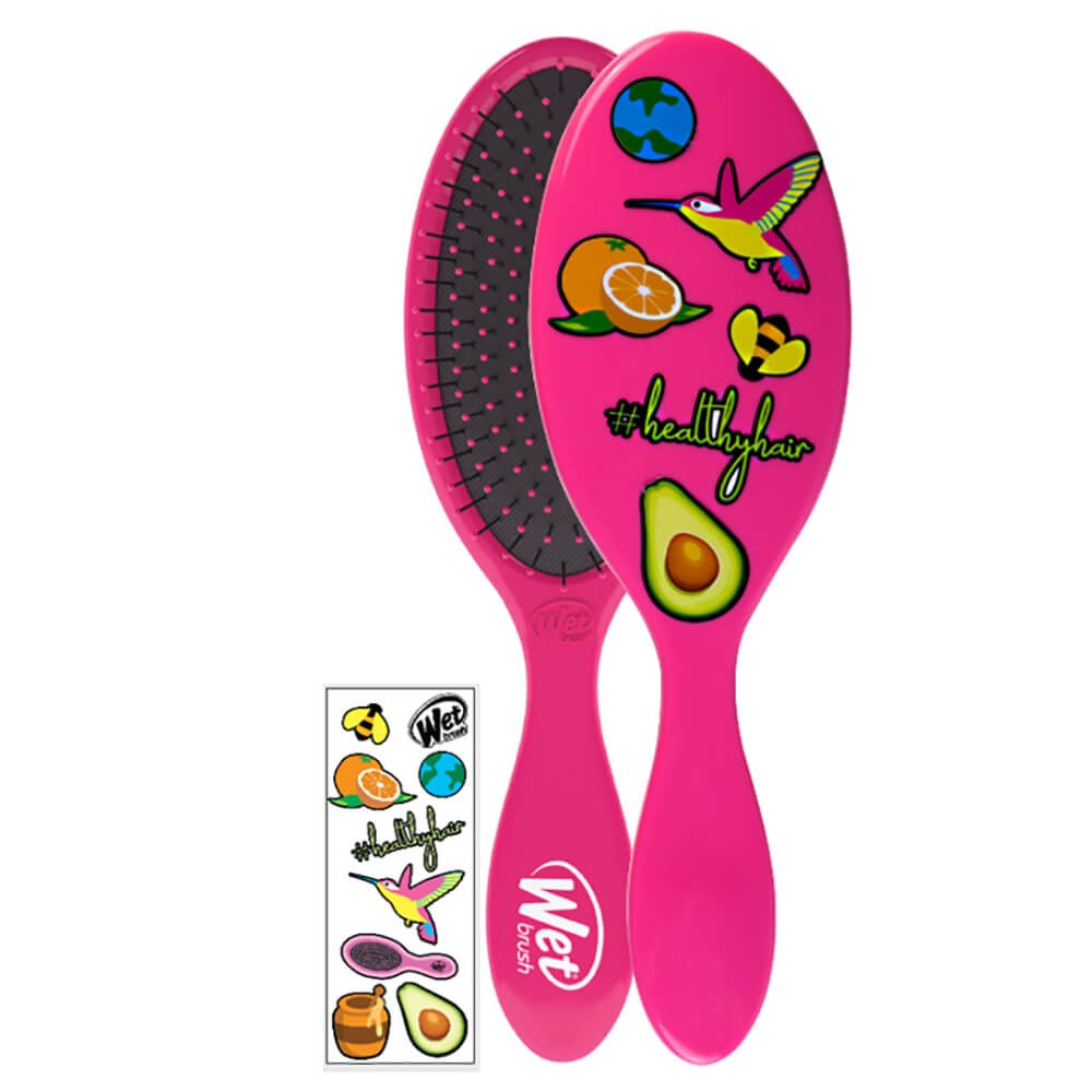 The WetBrush Detangler Sticker Hair Brush Pink allows you to customise your Detangler with health themed stickers. The WetBrush  Detangler features exclusive IntelliFlex bristles which flex with your hair to remove knots easily. Minimises damaged on wet or dry hair, as well as reducing pain. The health-themed sticker sheet contains nine waterproof stickers, easy to apply and leave no residue.