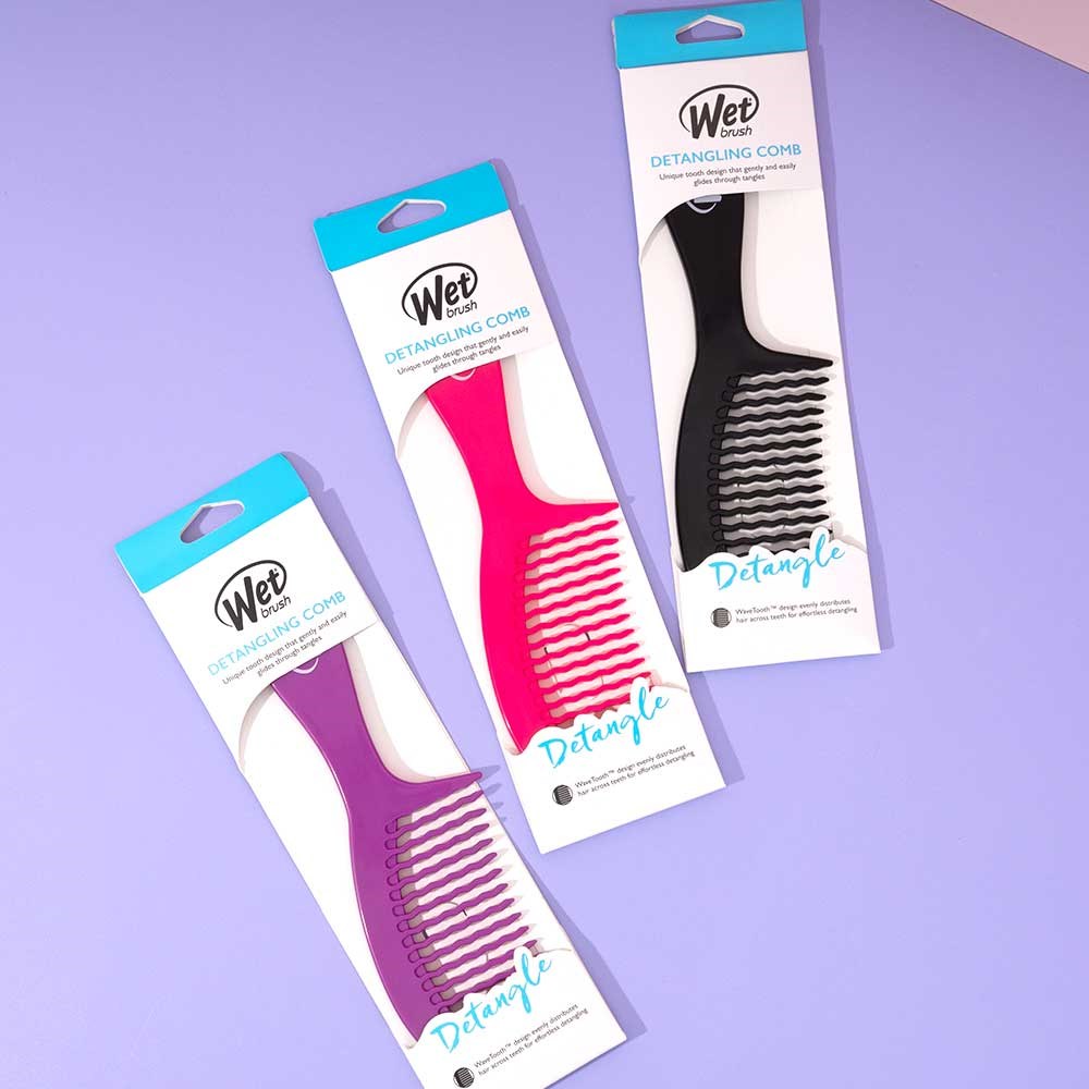 The WetBrush Detangling Comb Black offers a unique tooth design that gently and easily glides through tangles. The exclusive WaveTooth design comb evenly distributes hair across teeth for effortless detangling. Combs through conditioner and hair masks for thorough and even coverage. Works great on thick, curly and straight hair. Wet Brush won’t snag or pull hair!