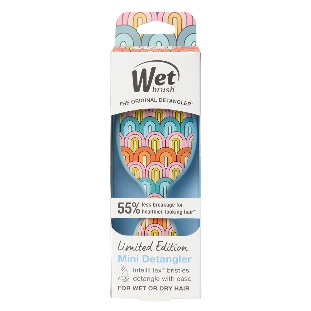 Sweetly detangle with this adorable on-the-go brush! WetBrush Endless Summer Mini Detangler Rainbow helps hair stay strong and healthy-looking. Gently loosen knots on wet or dry hair, without pulling or snagging. Exclusive, ultra-soft IntelliFlex bristles glide through tangles on all hair types with ease. The moment you use it, you’ll feel the Wet Brush difference and never want to try another hairbrush again. Kids love it too! Limited edition in Rainbow.