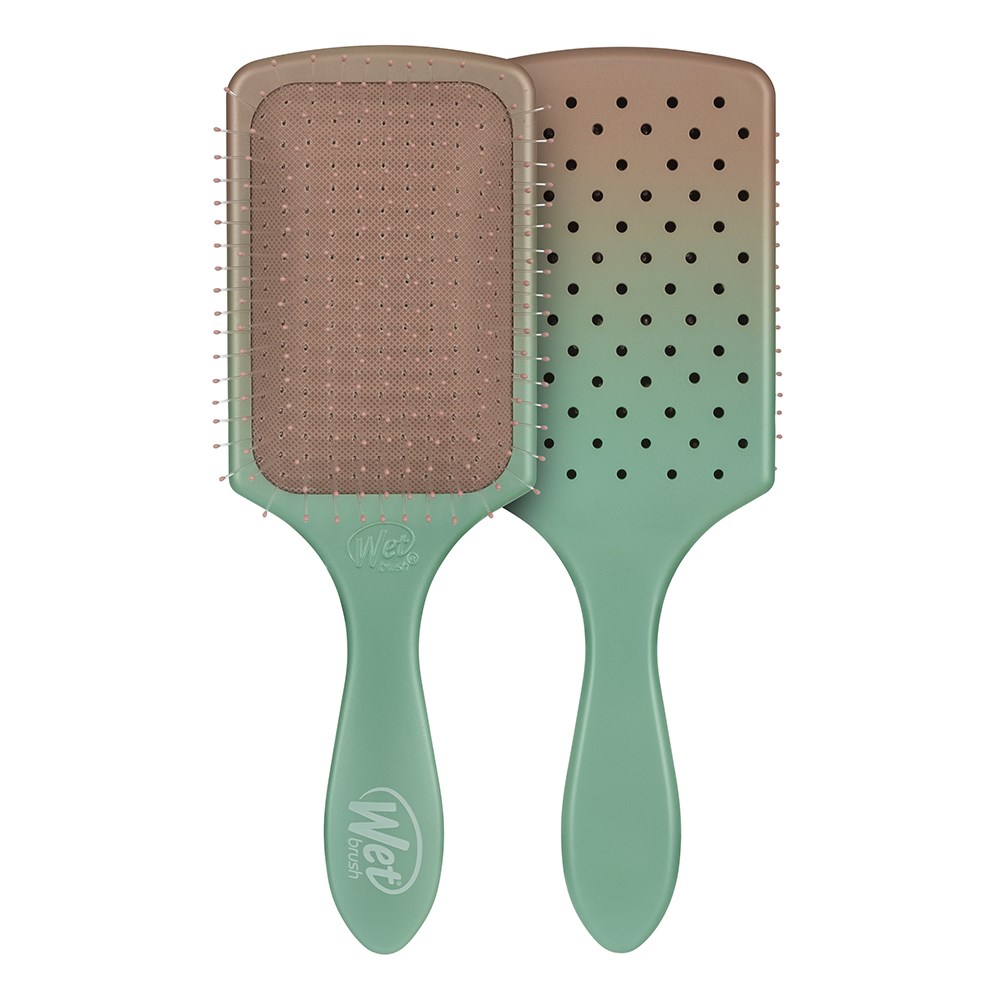 Meet the WetBrush Feel Good Ombre Paddle Detangler Seafoam. Spread conditioning treatments and hair masks through hair with effortless ease. The vented design makes it easy for water and excess product to escape the brush, ensuring there’s no leftover build-up. Cleaning the brush is a breeze - just rinse and repeat. 20% larger surface area spreads treatments and masks evenly through hair. Also adept at detangling, ultra-soft IntelliFlex bristles glide through tangles without pulling or breaking hair. Feel good in Wet Brush limited edition ombre!