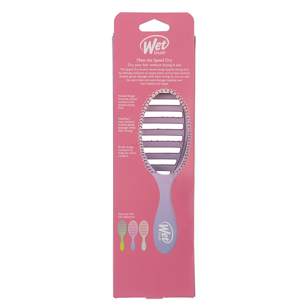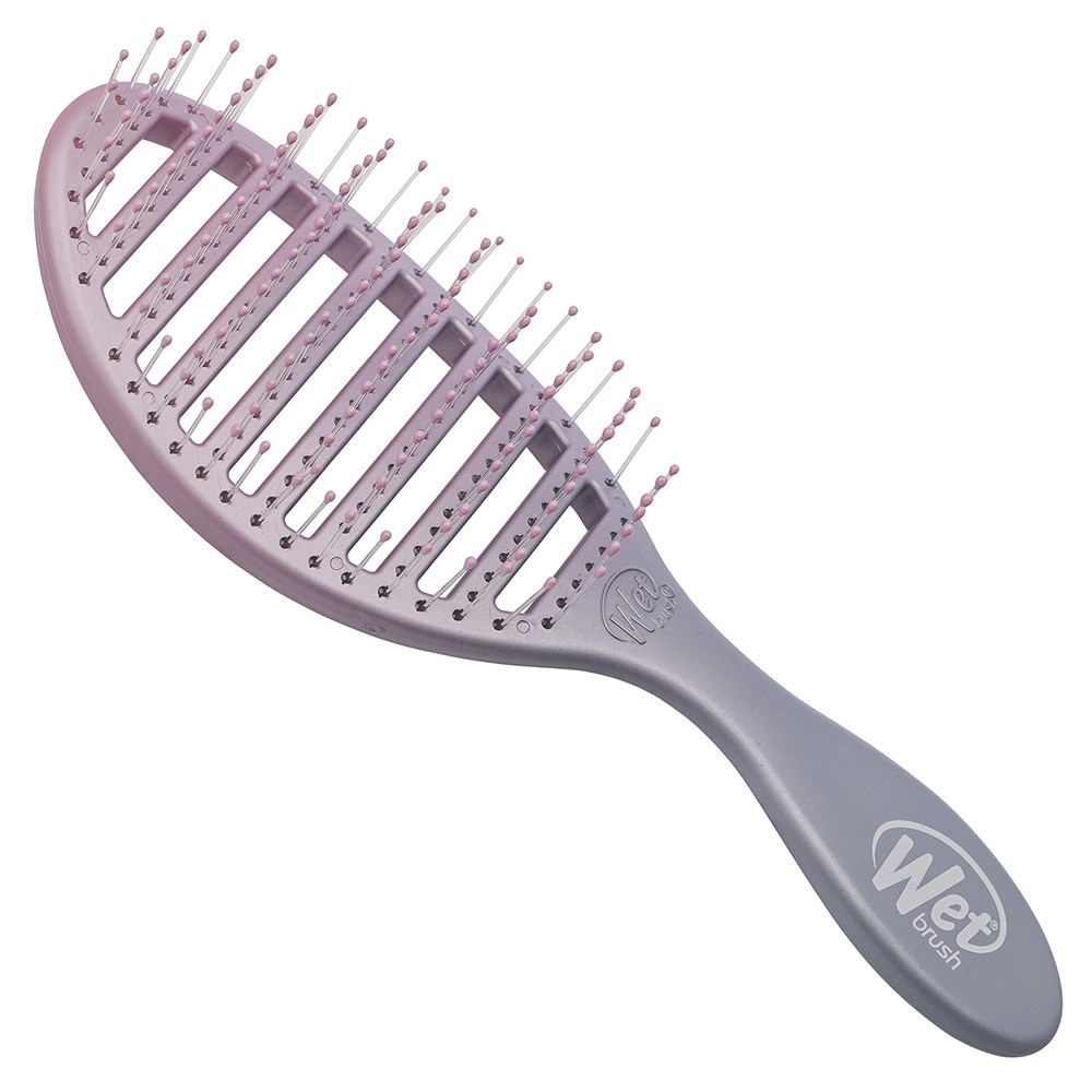 Meet the WetBrush Feel Good Ombre Speed Dry Purple. Dry hair without drying it out. The Speed Dry’s vented design speeds up drying time by allowing moisture to escape faster. Heat-resistant Wet Brush HeatFlex bristles gently detangle while blow-drying. Skip the extra heat and avoid damage, helping to keep hair happier. Brush design contours to scalp for extra comfort. Limited edition, ombre hues sure to make you and your hair feel good!