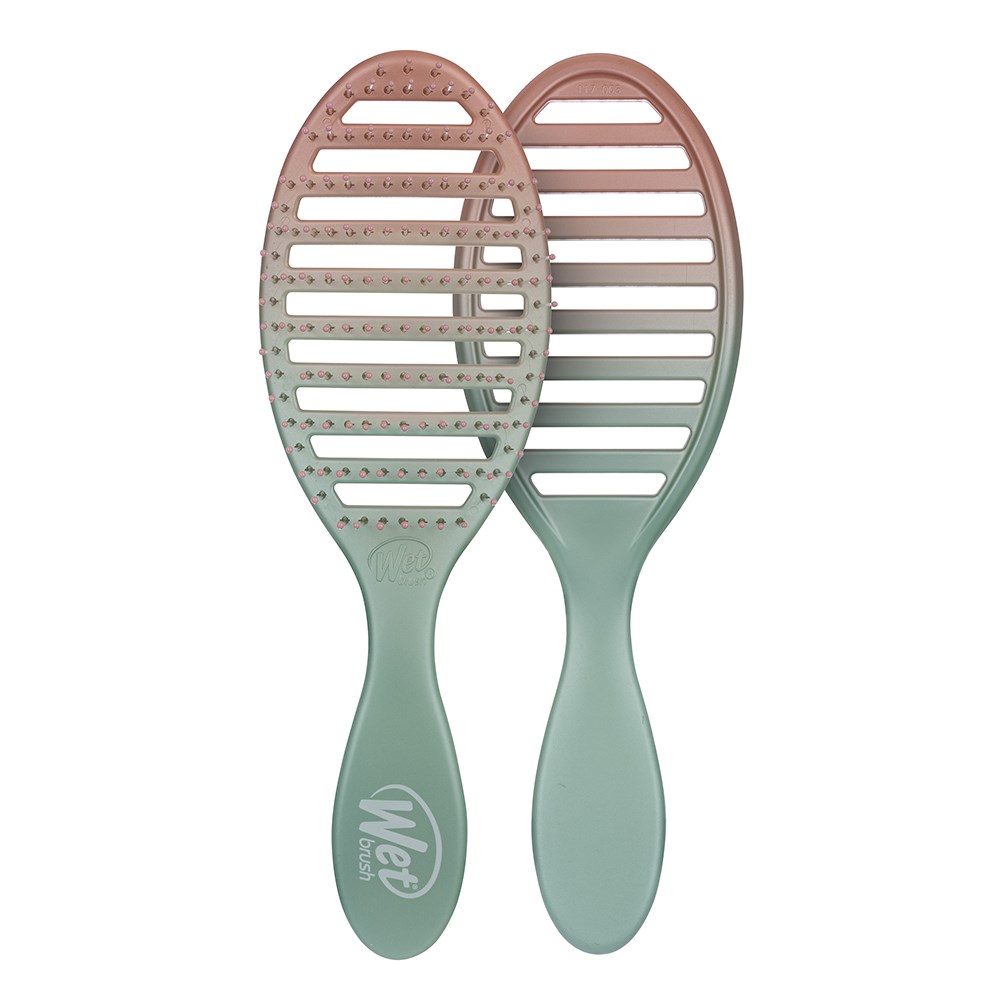 Meet the WetBrush Feel Good Ombre Speed Dry Seafoam. Dry hair without drying it out. The Speed Dry’s vented design speeds up drying time by allowing moisture to escape faster. Heat-resistant Wet Brush HeatFlex bristles gently detangle while blow-drying. Skip the extra heat and avoid damage, helping to keep hair happier. Brush design contours to scalp for extra comfort. Limited edition, ombre hues sure to make you and your hair feel good!
