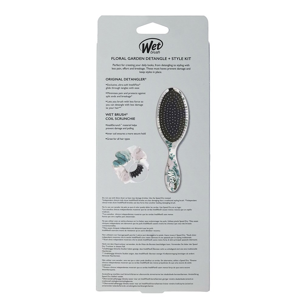 Detangle and style with less pain, effort and breakage. This limited edition WetBrush Floral Garden Detangle and Style Kit includes the Original Detangler Hair Brush and Coil Scrunchie. Brush with Original Detangler for over 45% less breakage and style with the cute, comfy, no-pulling, secure hold scrunchie. Perfect for creating daily looks, this ultra-fun detangling kit is designed to prevent damage while letting you live tangle-free. Detangling with a dose of Wet Brush.
