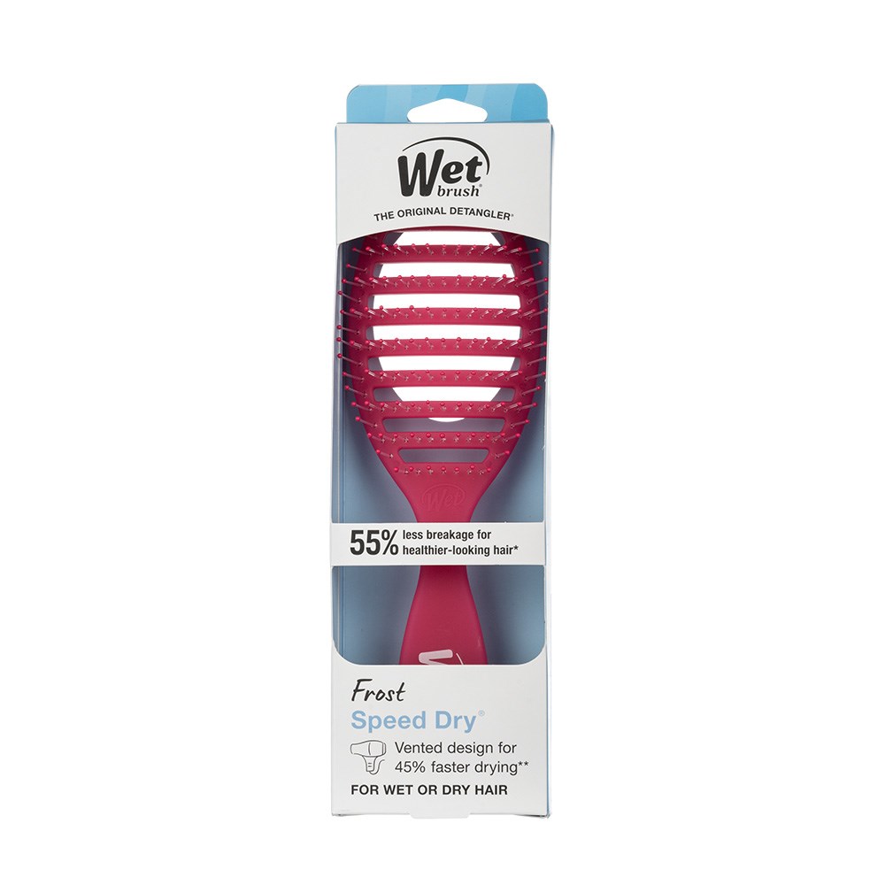Meet the WetBrush Frost Speed Dry in Pink. Dry hair without drying it out. The Speed Dry’s vented design speeds up drying time by allowing moisture to escape faster. Heat-resistant HeatFlex bristles gently detangle while blow-drying. Skip the extra heat and avoid damage, helping to keep hair happier. Brush design contours to scalp for extra comfort. Limited edition pink colour.