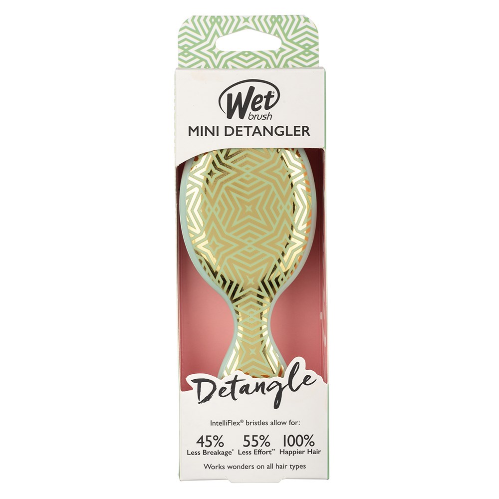 WetBrush Geo Mini Detangler Confetti Jade, the detangler for life on-the-go. WetBrush have shrunk their Original Detangler into a smaller, cuter size! Exclusive, ultra-soft IntelliFlex bristles glide through tangles with ease. Minimizing pain and protecting against split ends and breakage. All WetBrush Detanglers brush let you brush with less force so you can detangle with less damage to hair.