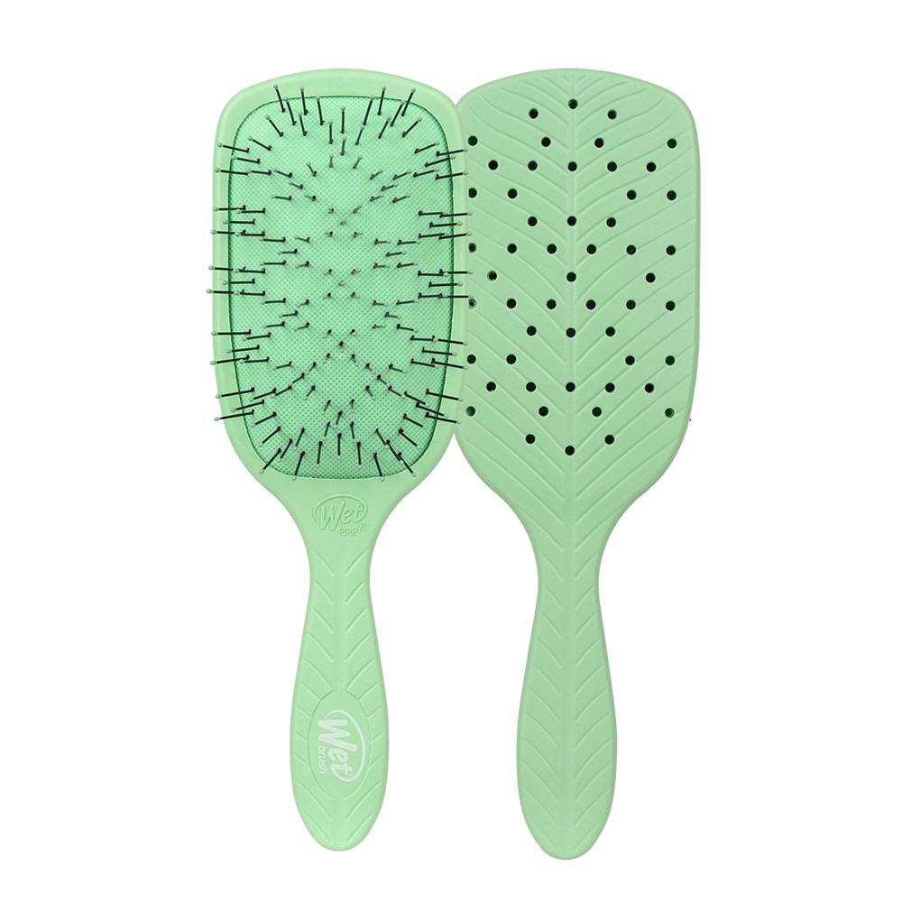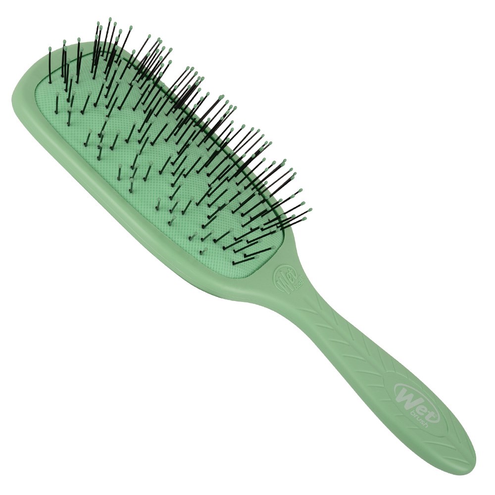Go green! Meet the WetBrush Go Green Thick Hair Paddle Detangler Green, the detangling brush which won’t hurt hair or the environment. With a brush body made from 58% plant-based plastic, this brush is designed with a larger paddle and a unique bristle pattern to allow you to easily brush through thick, coarse, curly, and long hair. Exclusive, ultra-soft IntelliFlex bristles glide through wet or dry hair without pain, breakage, or damage. Wet Brush AquaVent design allows water to drain from the brush. Great for spreading hair treatments and masks easily.