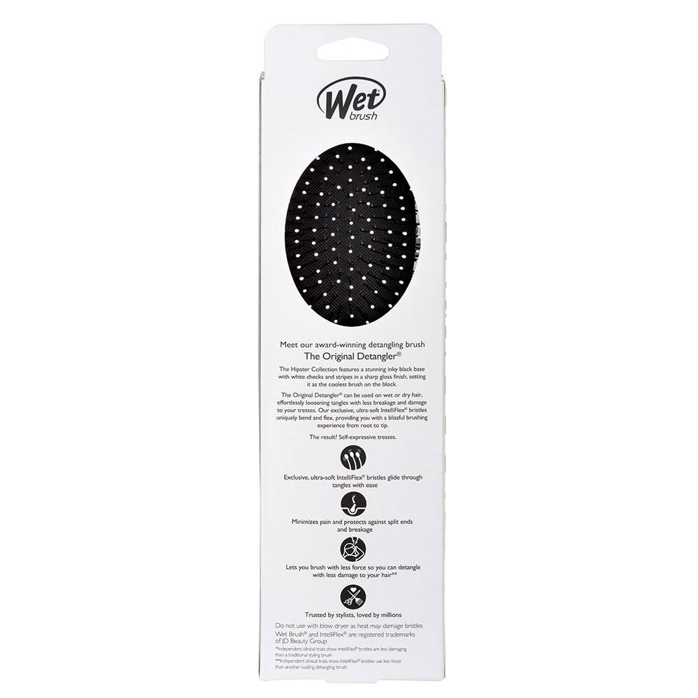 Revel in bold, unique and quirky design with the WetBrush Hipster Detangler Sketch Hair Brush. World famous exclusive IntelliFlex bristles loosen knots and tangles on wet or dry hair, without pulling or snagging. Letting you brush with less force resulting in less damage. The moment you use a WetBrush Original Detangler, you’ll never want to try another detangling hair brush again.