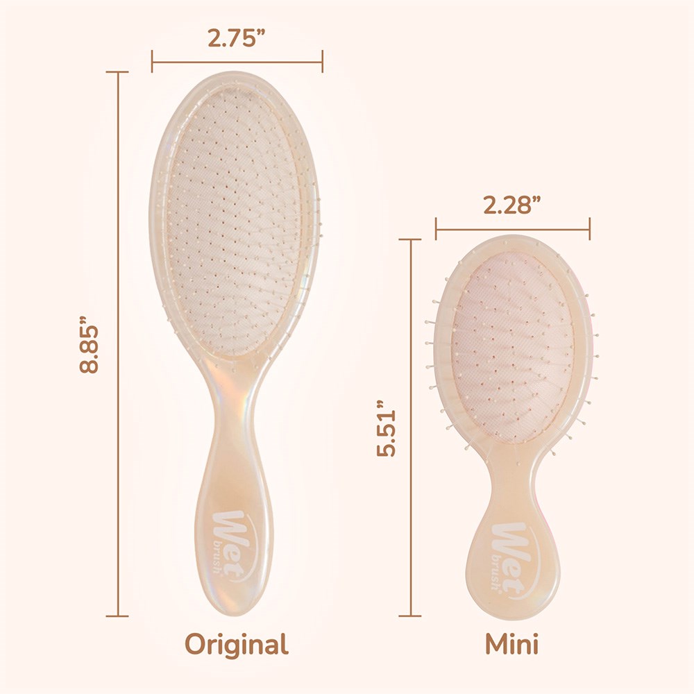 Detangling at home and on-the-go in a holographic dream. This limited edition WetBrush Holographic Detangler Kit Cream includes the Original Detangler and a Mini Detangler. The world-famous, ultra-soft IntelliFlex bristles glide through tangles on all hair types with ease. The mini size is perfect for on-the-go. The moment you use it, you’ll feel the difference and never want to try another hairbrush again. Add some shine to your day with this limited edition Duo Kit.