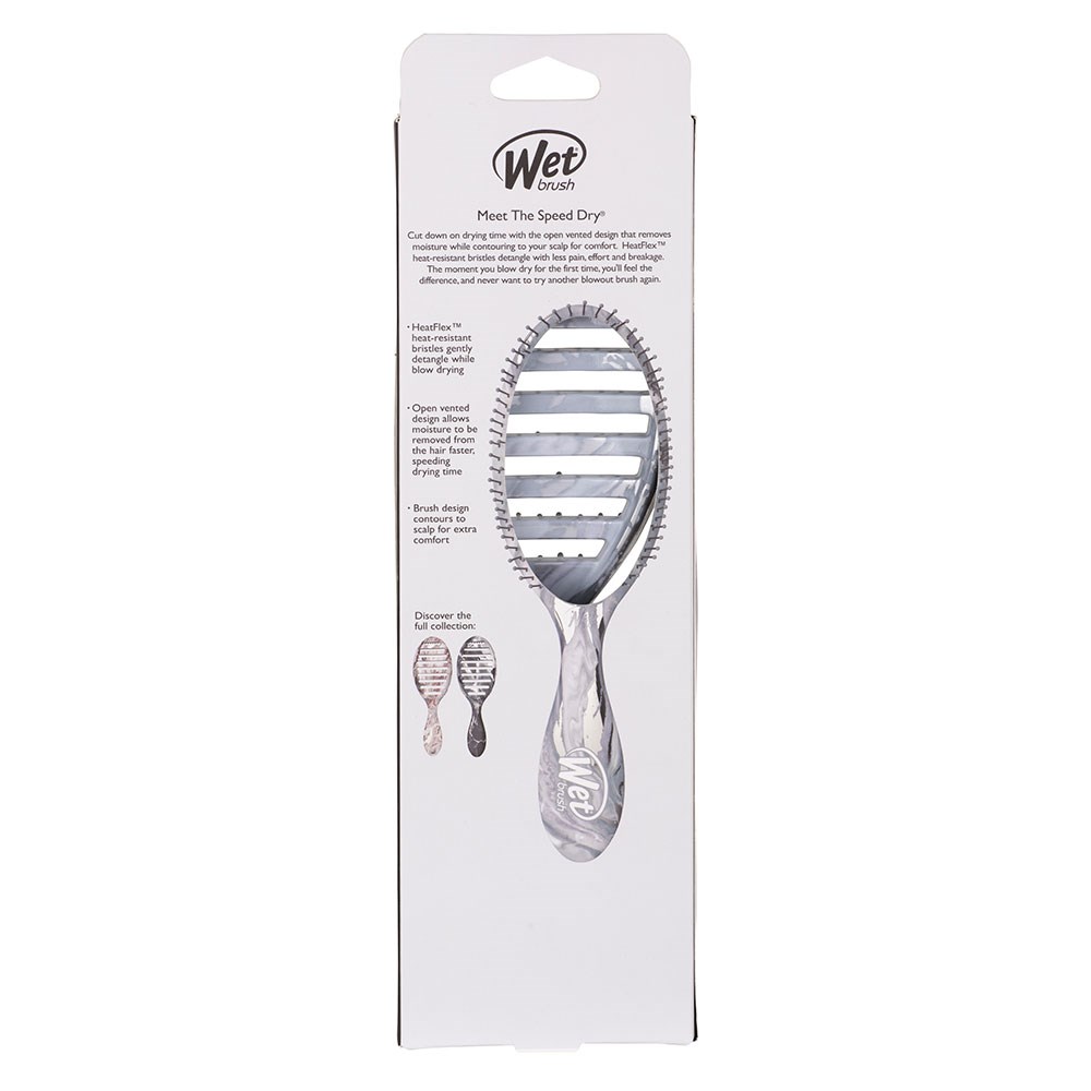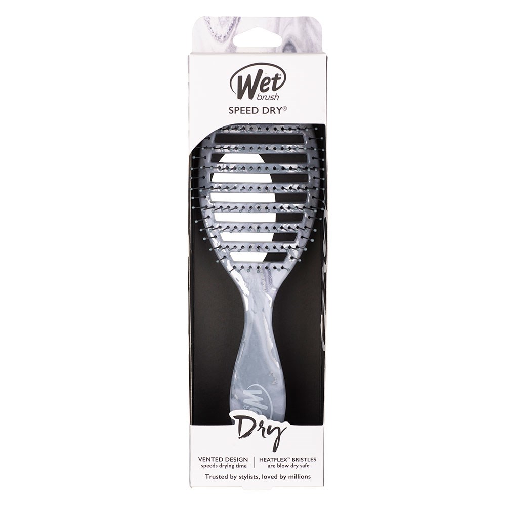 The WetBrush Metallic Marble Speed Dry in Silver speeds up drying time by allowing moisture to escape faster, and its heat-resistant bristles gently detangle whilst you blow-dry. So you can skip the extra heat and avoid damage, keeping your hair healthy and happy. Less drying time equals happier Hair!