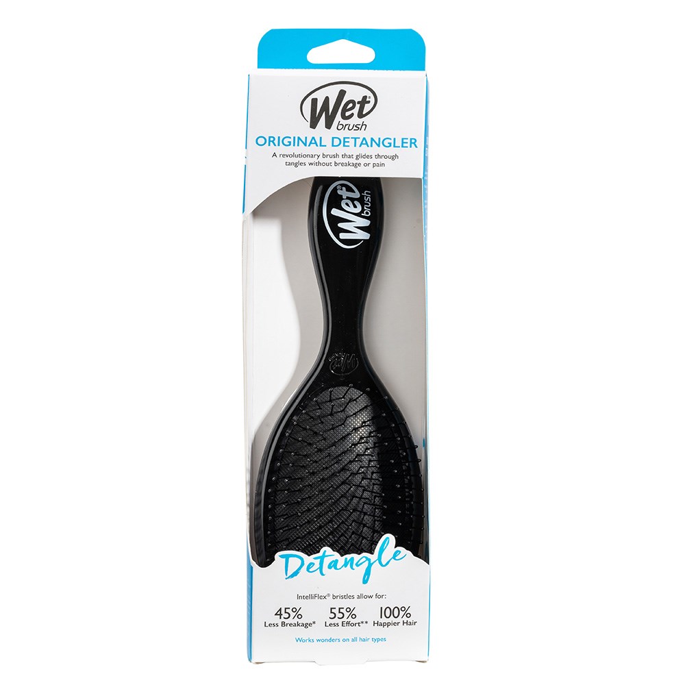 Meet the WetBrush Original Detangler Hair Brush Black. World famous exclusive IntelliFlex bristles loosen knots and tangles on wet or dry hair, without pulling or snagging. Letting you brush with less force resulting in less damage. The moment you use a Wet Brush Detangler, you’ll never want to try another detangling hair brush again.