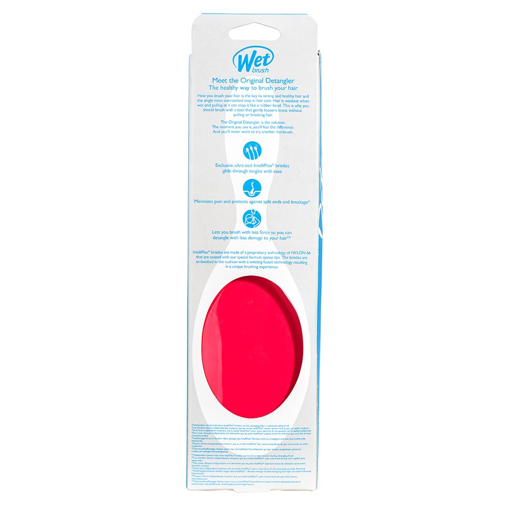 Meet the WetBrush Original Detangler Hair Brush Pink. World famous exclusive IntelliFlex bristles loosen knots and tangles on wet or dry hair, without pulling or snagging. Letting you brush with less force resulting in less damage. The moment you use a Wet Brush Detangler, you’ll never want to try another detangling hair brush again.