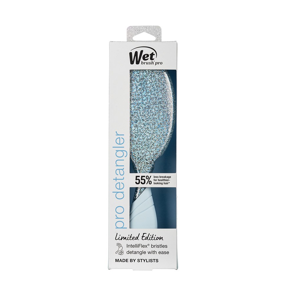 WetBrush turns 20! WetBrush Pro Birthday Celebration Detangler Blue features a limited edition, sparkling pastel design. This is the world famous, award-winning Original Detangler redesigned by stylists for stylists. Revolutionary IntelliFlex bristles diffuse knots on all hair types, wet or dry, gliding through tangles with less effort, less pain and over 45% less breakage**. Ergonomically advanced with finger rests and rubberised EasyGrip handle for more comfort and control.