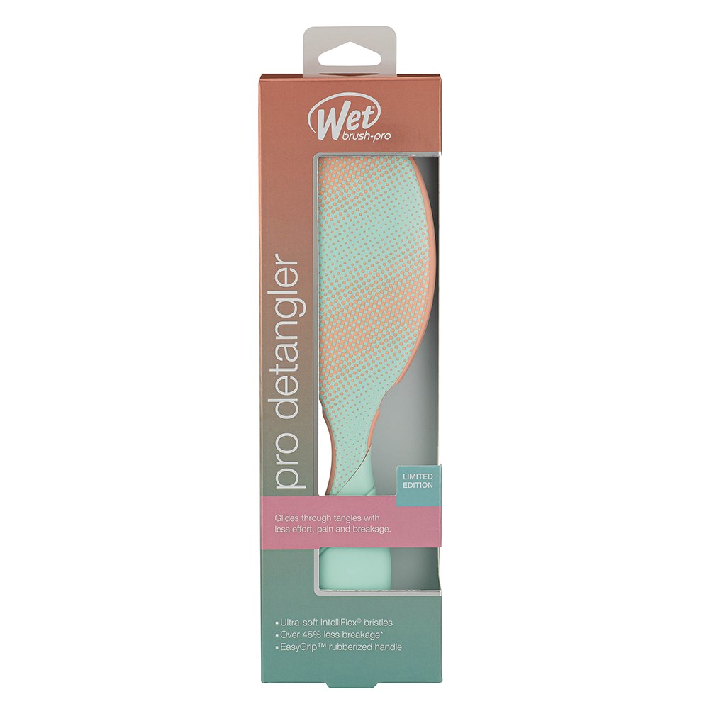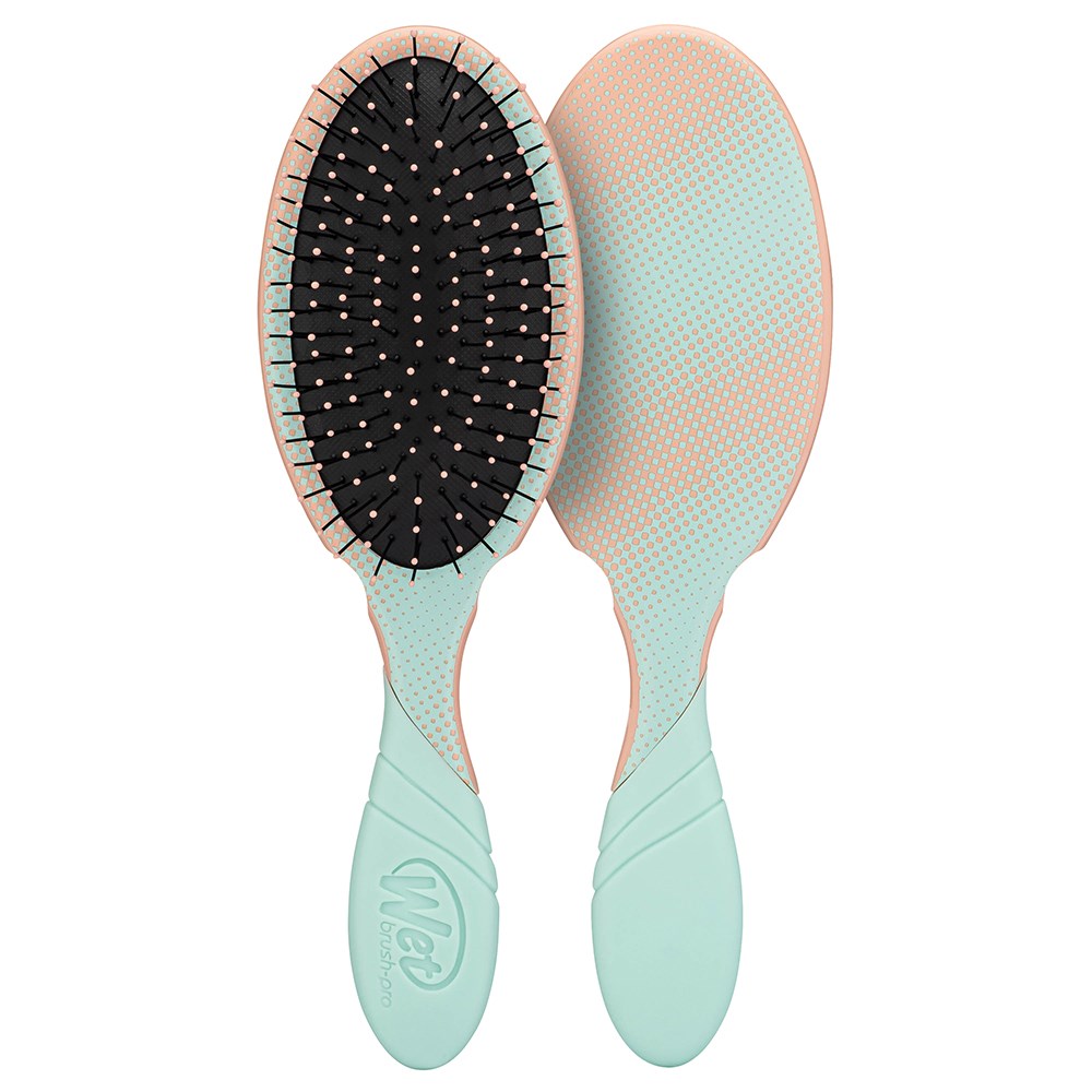 Dazzling detangling! WetBrush Pro Dazzling Dots Detangler Mint Green features gorgeous, limited edition dot patterns. This is the world famous, award-winning Wet Brush Original Detangler redesigned by stylists for stylists. Revolutionary IntelliFlex bristles diffuse knots on all hair types, wet or dry, gliding through tangles with less effort, less pain and over 45% less breakage**. Ergonomically advanced with finger rests and rubberised EasyGrip handle for more comfort and control.