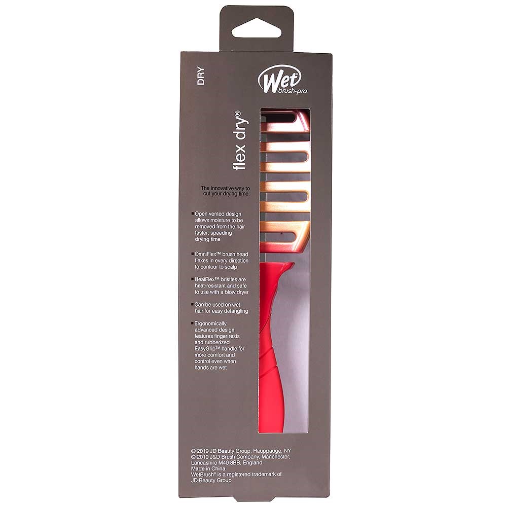 The innovative way to speed up blow-drying time. WetBrush Pro Flex Dry Coral Ombre features an open, flexible vented design to allow moisture to be removed from hair faster. Clever OmniFlex brush head flexes in every direction to contour to the scalp. With heat resistant HeatFlex bristles and an ergonomically advanced design vented hair brush, WetBrush Pro Flex Dry is designed by stylists for stylists.
