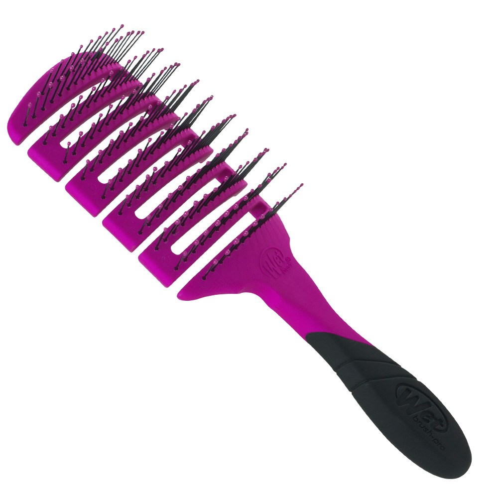 The innovative way to speed up blow-drying time. WetBrush Pro Flex Dry Paddle Hair Brush Purple features an open, flexible vented design to allow moisture to be removed from hair faster. Clever OmniFlex brush head flexes in every direction to contour to the scalp. With heat resistant HeatFlex bristles and an ergonomically advanced design, Wet Brush Pro Flex Dry vent brush is designed by hairstylists for hairstylists.