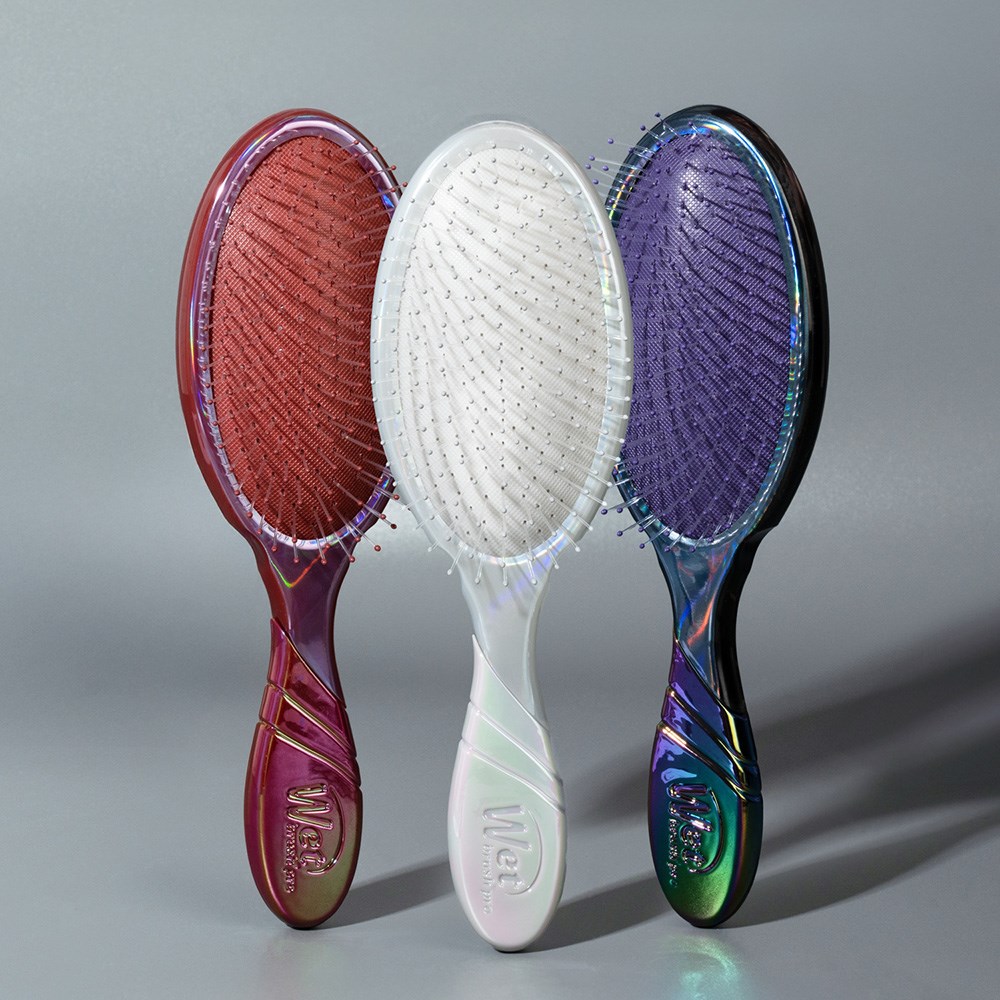 Otherworldly brushing! WetBrush Pro Holographic Detangler Cherry features a limited edition holographic design. This is the world famous, award-winning Wet Brush Original Detangler redesigned by stylists for stylists. Revolutionary IntelliFlex bristles diffuse knots on all hair types, wet or dry, gliding through tangles with less effort, less pain and over 55% less breakage for healthier-looking hair*. Ergonomically advanced with finger rests and rubberised EasyGrip handle for more comfort and control.